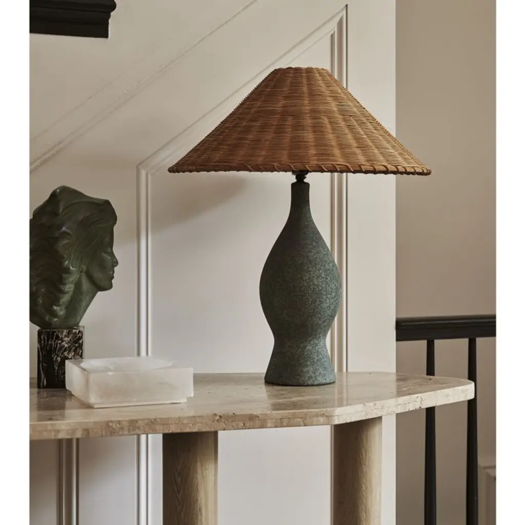 Courbe Green Ceramic Table Lamp With Rattan Shade By Athena Calderone 24.2"