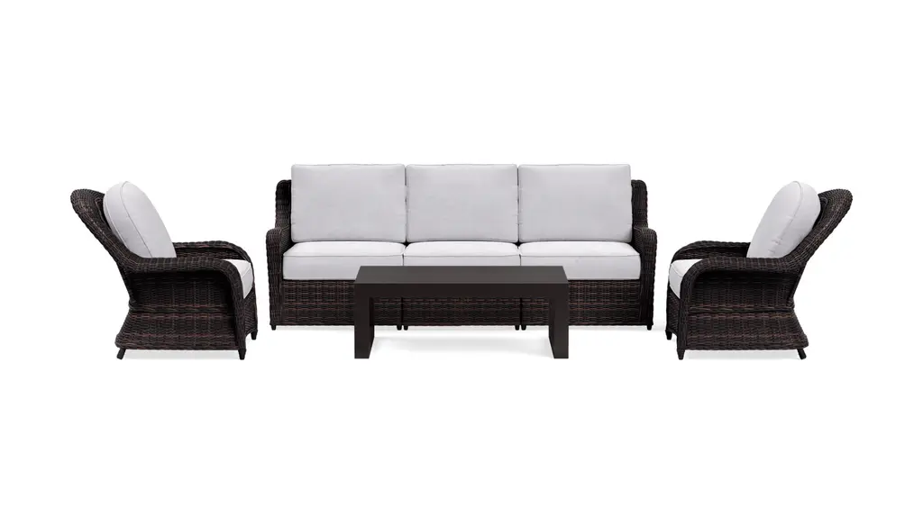 Courtyard Casual Costa Mesa 5 Pc Sofa & Coffee Table Set - Brown one Sofa, Two Club Chairs, One End Table, & Coffee Table