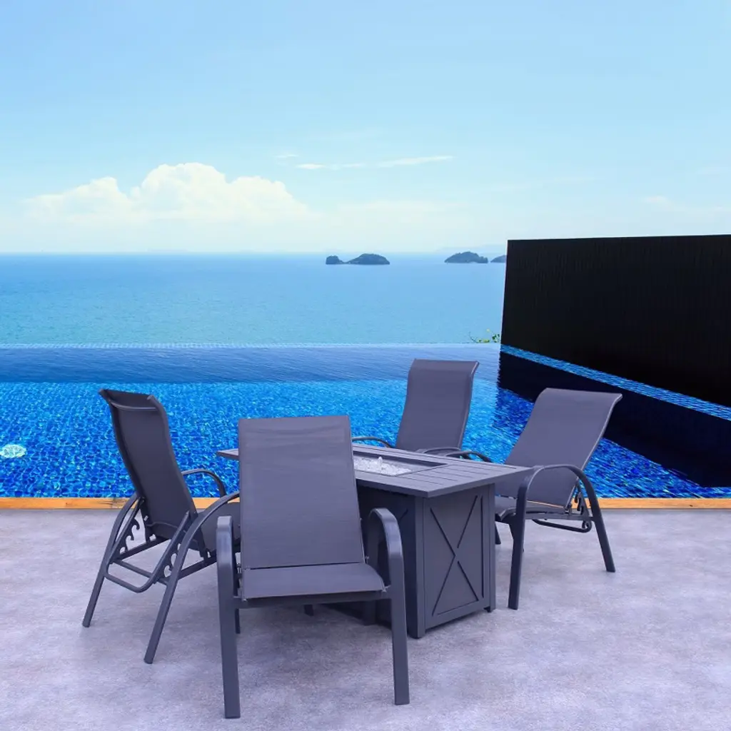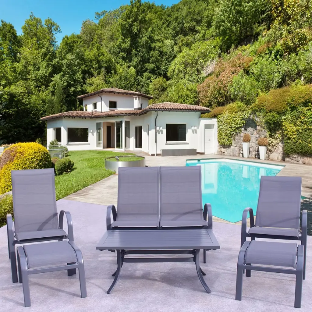 Santa Fe is a collection you can relax in for several years. Exceptionally strong and made of low maintenance aluminum and high-grade breathable pvc sling or synthetic woven material. Great for pools, patios or any outdoor space requiring carefree attention. Seating pieces are made with a durable powder coated finish. Fully assembled and 1 Year Limited Manufacturer Warranty