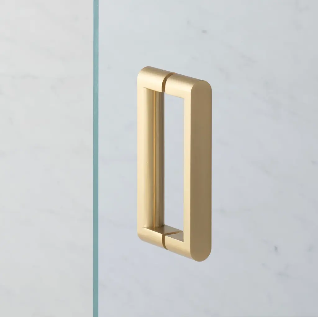 Bring a soft, modern look to the bathroom with our Cove Shower Handle Set. Inspired by our beloved Edgecliff hardware, it’s made of solid brass and has rounded edges that make it pleasing to the touch.Shop the Cove Hardware collection.