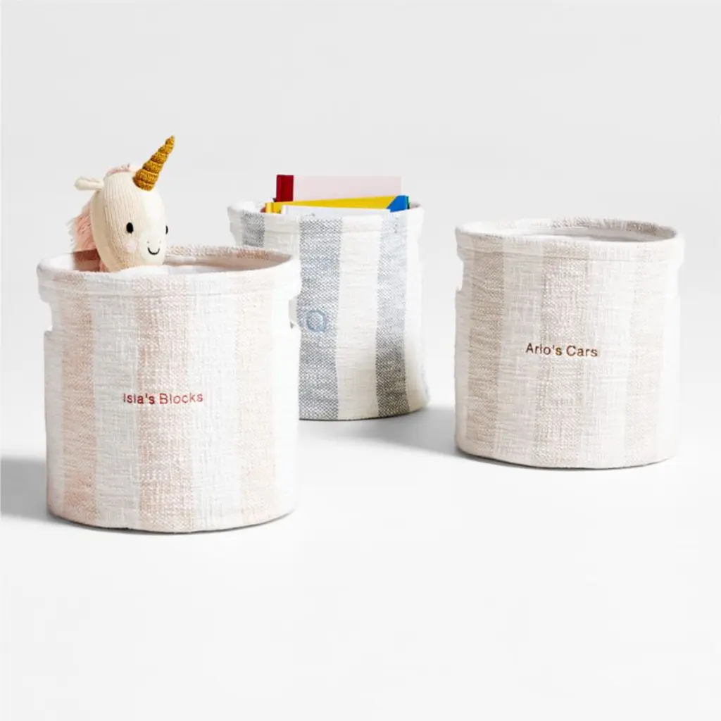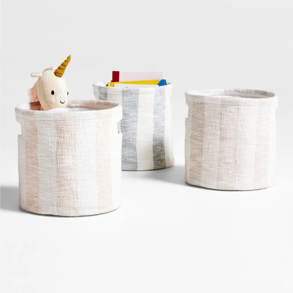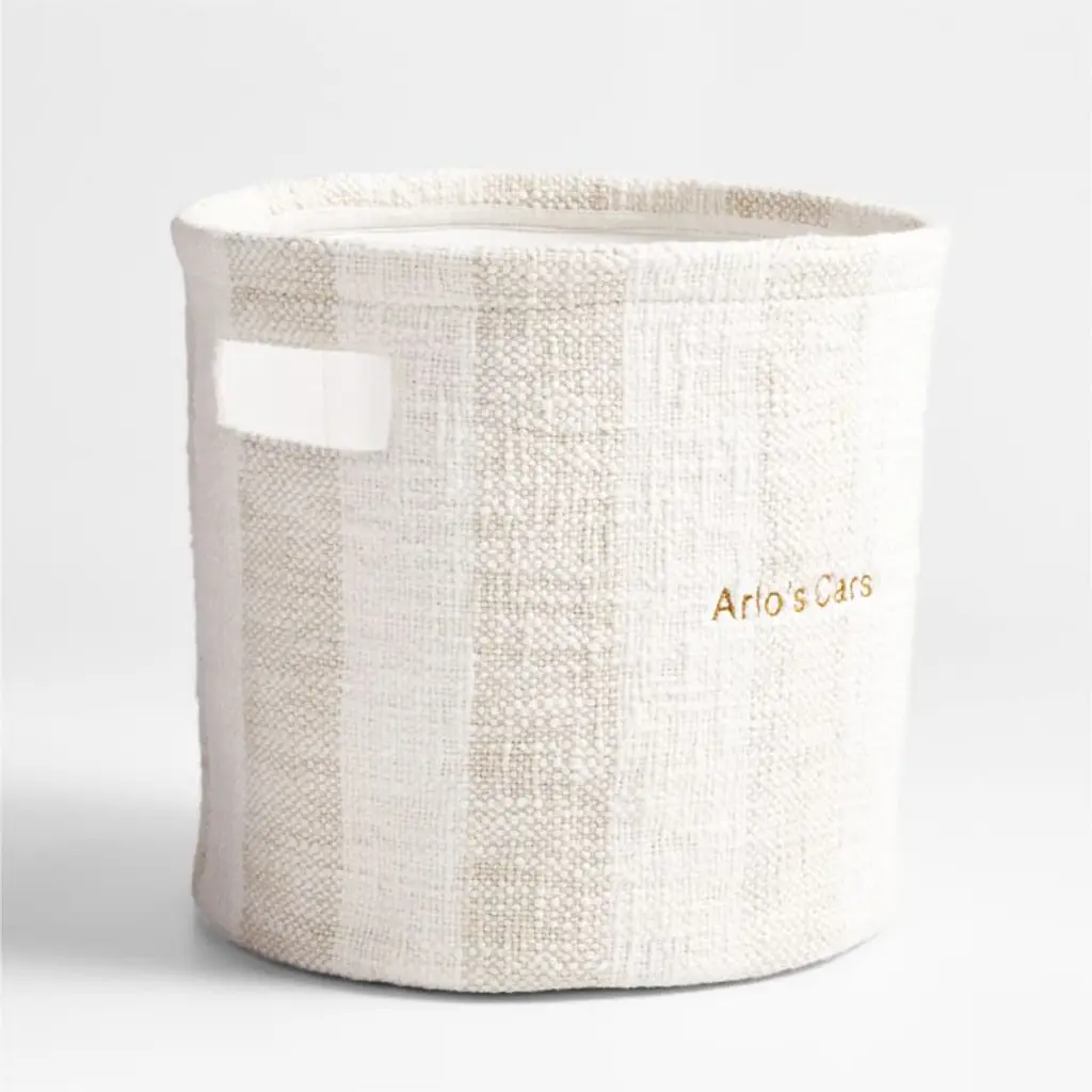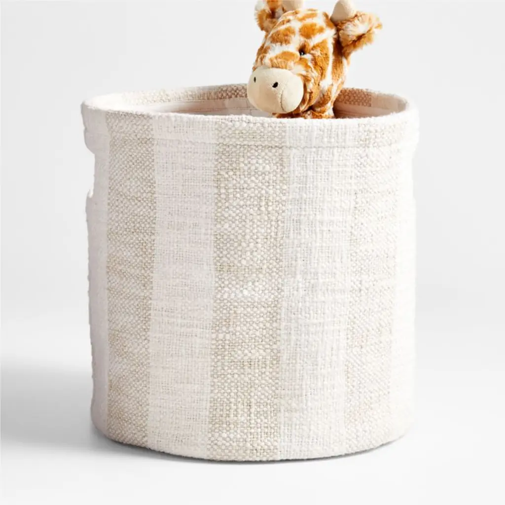 Cove Stone Tan Organic Cotton Striped Shelf Storage Bin