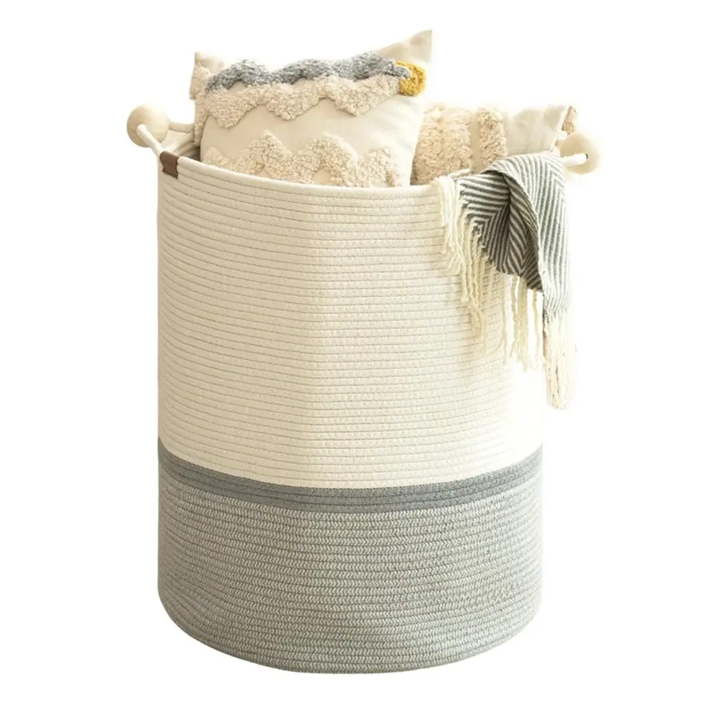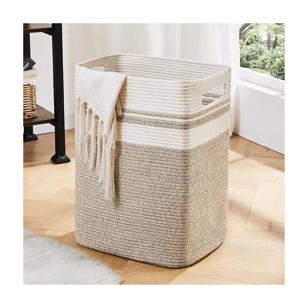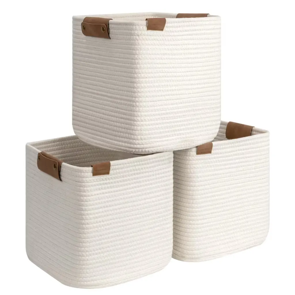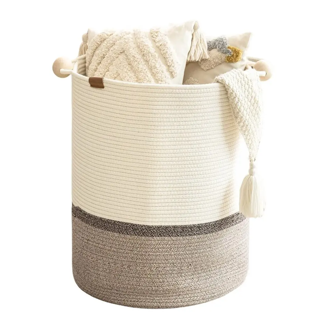 Cove Stone Tan Organic Cotton Striped Shelf Storage Bin