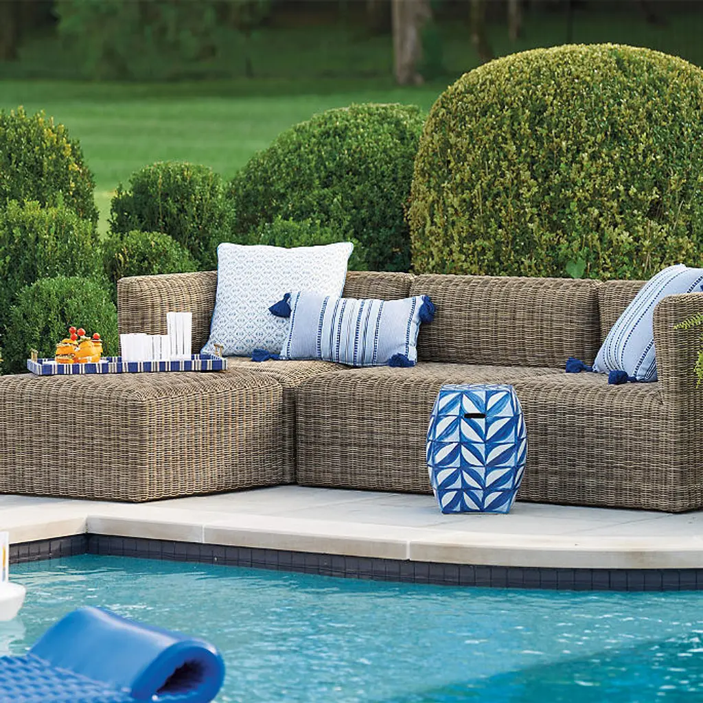 Perfect for a poolside or garden seating area, Covelle conveys the carefree beauty of cushionless living in all-weather wicker. With the seating's pleasant flexibility and a hidden layer of premium-quality, 2-1/-inch thick reticulated foam, it's sit-all-day comfortable. Weather-resistant resin wicker is handwoven and finished in Khaki. Part of the Covelle Modular Seating Collection All-weather wicker is handwoven over a powdercoated aluminum frame Premium wicker construction resists mold, mildew, fading and splintering Frame is backed by an industry-leading 10-year structural warranty Cushionless design, with hidden layer of 2-1/2"-thick reticulated foam beneath wicker No more positioning or storing cushions Khaki wicker Arrives assembled A Frontgate exclusive. At Frontgate, our primary focus is quality. We guarantee that every product we sell will stand up to the supreme test – our customers' satisfaction. To learn more about our policies, visit our Shipping & Processing, Returns & Exchanges and Warranty & Price Guarantee pages.