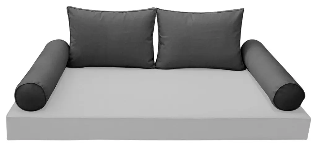 • Style-1 Full Size Pipe Trim Bolster & Back Pillow Cover Set• • Mattress and Insert Not Included• • 2 x Bolster Pillow Cover Only: 52" x 8"• 2 x Back Pillow Cover Only: 28" x 20" x 5"• Color: AD003• Edge Trim: Piped Edge (same color)• Fabric: 230 Gram Polyester Upholstery• Hidden Zipper• Water Repellent • Not Water Proof• • Tips: Please cover or store cushion pillow in rainy season• Cleaning: Soap clean and rinse off with water hose. Outdoor durable!• Quantity: 1