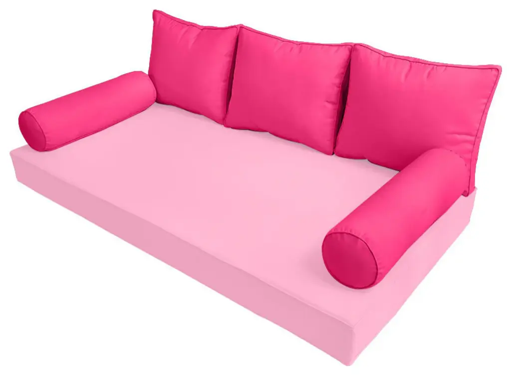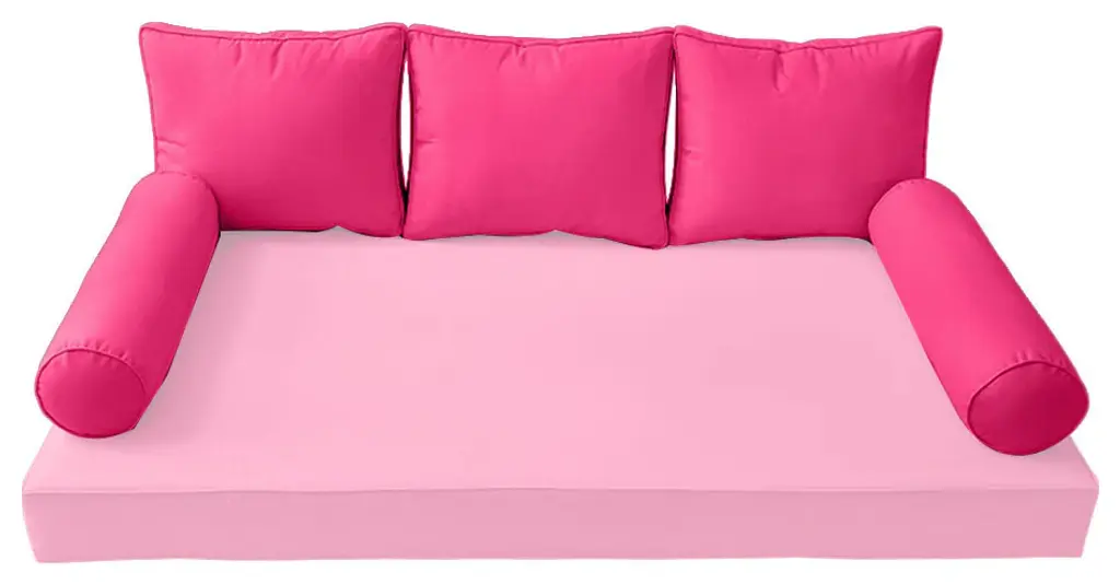 • Style-3 Twin Size Pipe Trim Bolster and Back Pillow Cover Set• • Mattress and Insert Not Included• • 2 x Bolster Pillow Cover Only: 27" x 8"• 3 x Back Pillow Cover Only: 24.5" x 20" x 5"• Color: AD110• Edge Trim: Pipe Trim ( same color )• Fabric: 230 Gram Polyester Upholstery• Hidden Zipper• Water Repellent • Not Water Proof• • Tips: Please cover or store cushion pillow in rainy season• Cleaning: Soap clean and rinse off with water hose. Outdoor durable!• Quantity: 1