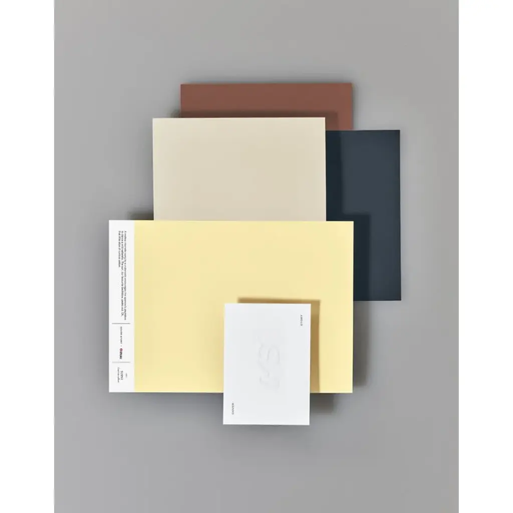 Cover Story’s interior paint in the shade i02 Toini is a classic light yellow that adds a fresh feel to the space and refracts light create a luminous glow – as if the room was filled with sunshine. Part of the Cover Story x Iittala capsule collection, the paint is inspired by Iittala’s extensive glass color archive: Toini’s bright hue is Cover Story’s interpretation of Iittala’s yellow-colored glass. Toini is the perfect pair for oak furniture or any shade of blue or gray, either as a larger surface or a smaller decorative stripe, for example. Cover Story’s eco-friendly, water-based interior paints are suitable for both walls and ceilings and have a flat finish that provides a matte, non-reflective surface. The plastic-free paints are safe to use indoors as they are odorless and do not emit harmful VOCs into the indoor air. What’s more, the breathable paints are even suitable for wood and log surfaces. Tips for purchasing Cover Story paints: One can of paint will cover a surface of 75–100 m². Count the amount of paint needed by multiplying the wall or ceiling width with its length. We recommend then doubling that, as the best result is achieved with two coats of paint. It is advisable to always use a sample before painting – lighting has a huge impact on how a particular shade looks in a particular space! Cover Story’s no-mess adhesive paint samples are available for purchase separately.
