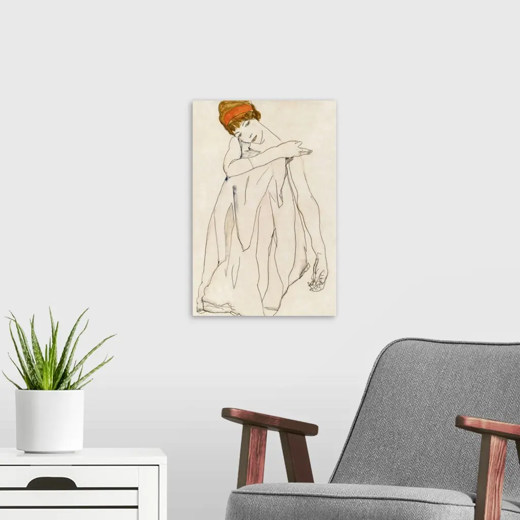 Dancer (1913) by Egon Schiele. Original female line art drawing from The MET museum. Digitally enhanced by rawpixel.