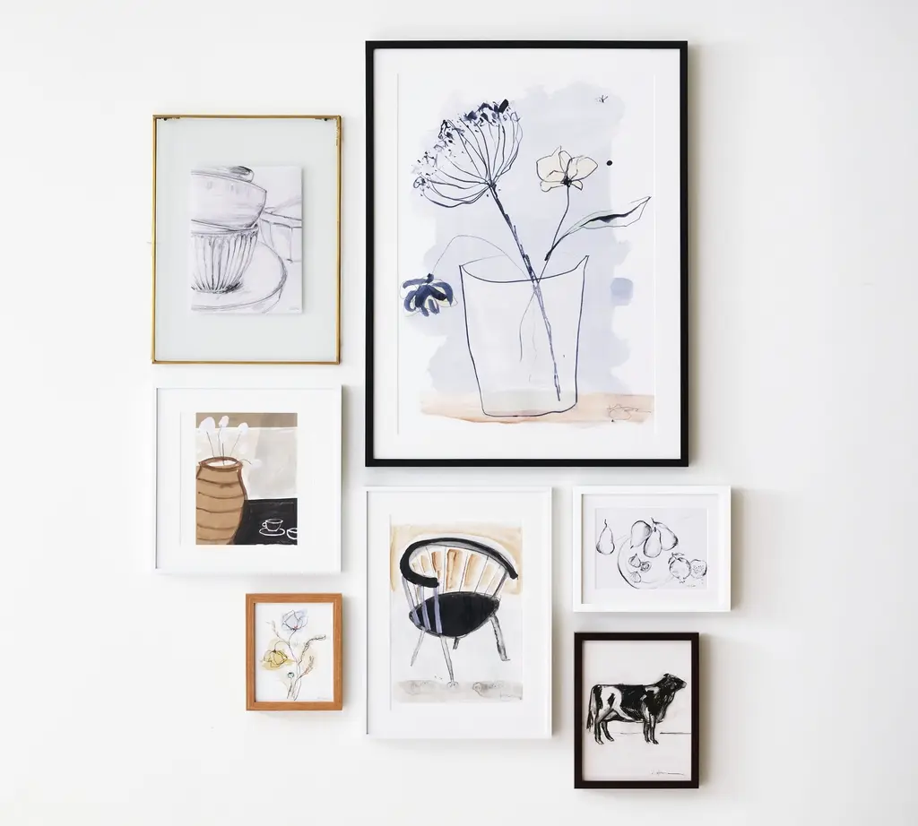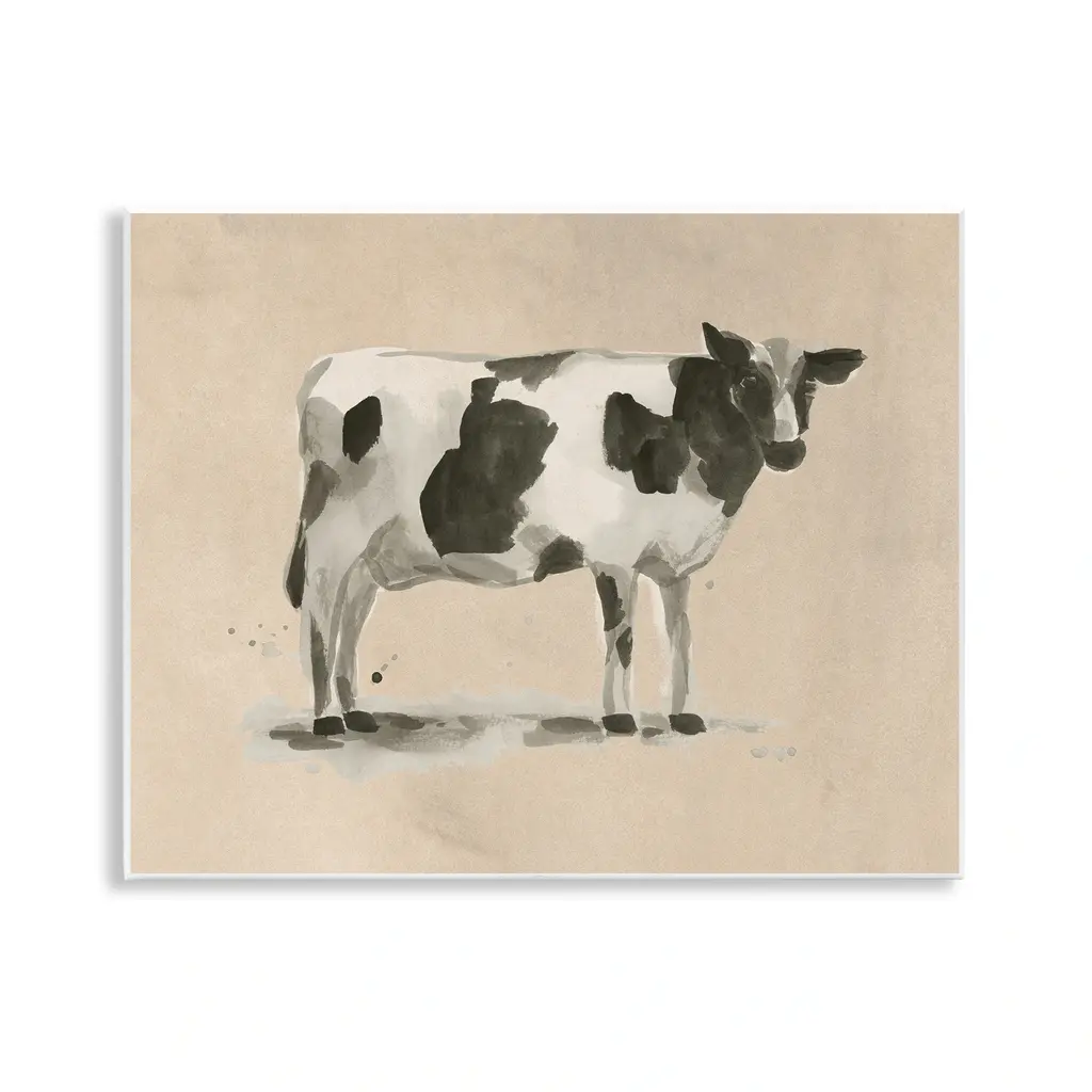 A charcoal study of a cow has the tactile quality of an artist’s quick sketch and the simplicity of a profile study. The straight-from-the-studio character adds life to a wall in black and white neutrals that work anywhere.