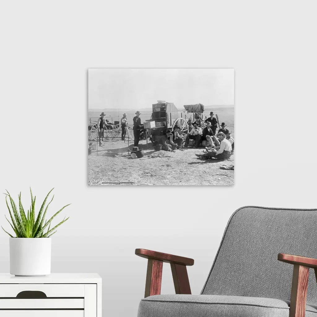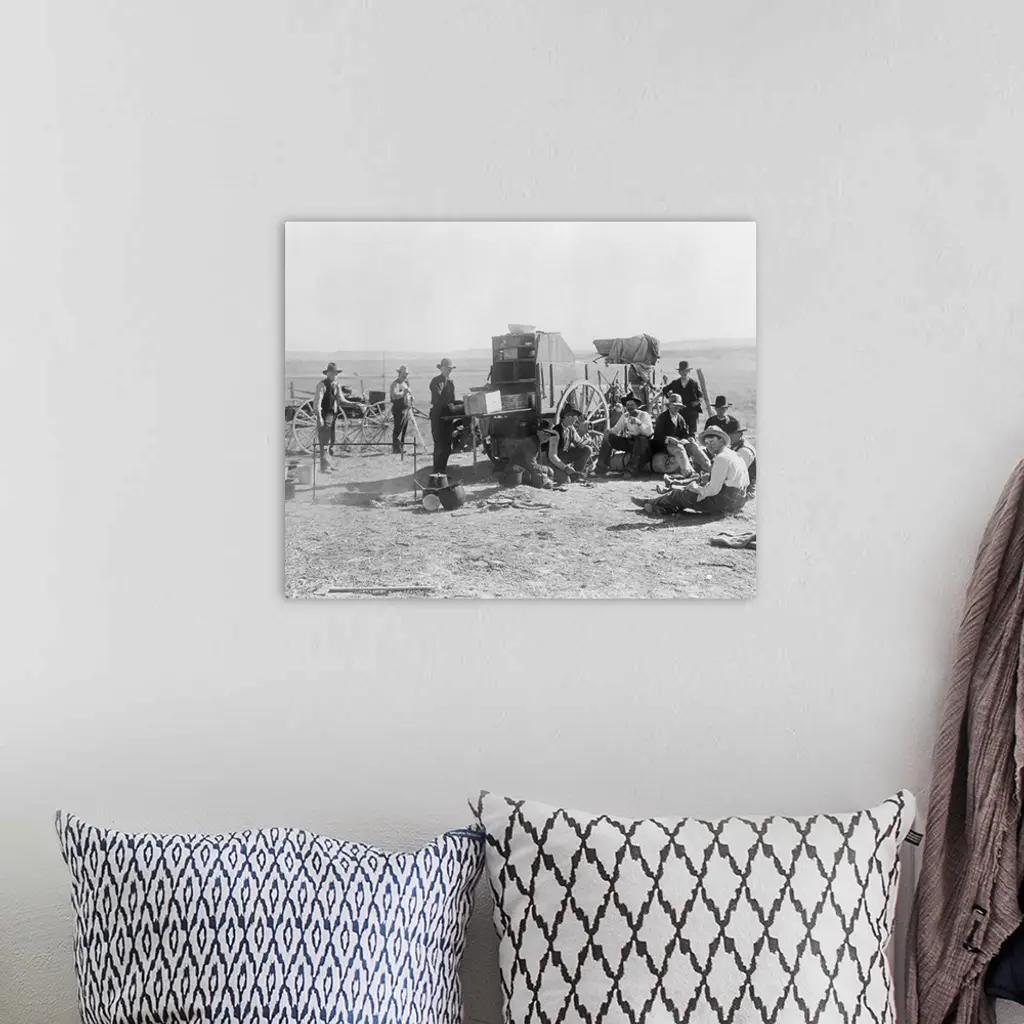 Cowboy Camp, C1900. A Group Of Cowboys Sitting And Standing Beside A Chuckwagon At A Campsite Near Barela, Colorado. Photographed By Otis A. Aultman, C1900.