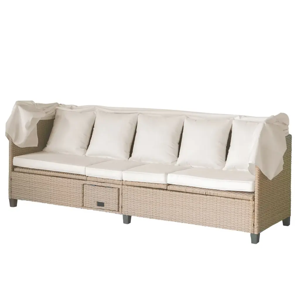 Cowlown Beige 4-piece Uv-resistant Patio Sofa Set, Retractable Canopy, Adjustable Recliners & Lift Table