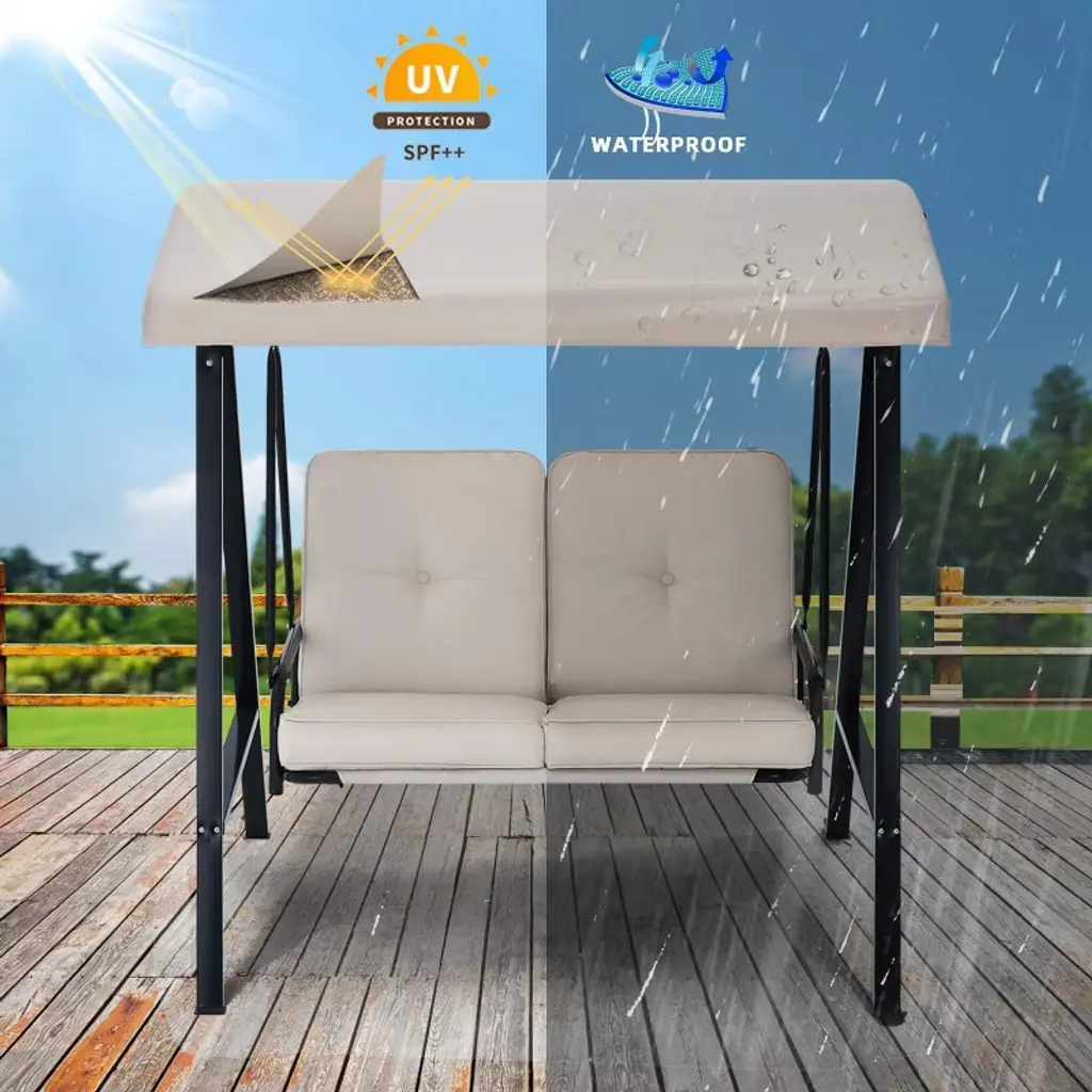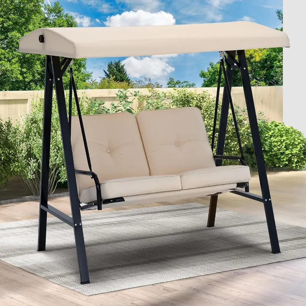 Cowlown Beige Outdoor 2 Seat Swing Chair With Adjustable Canopy And Removable Cushion, Suitable For Backyard, Garden, Yard, Poolside, Balcony