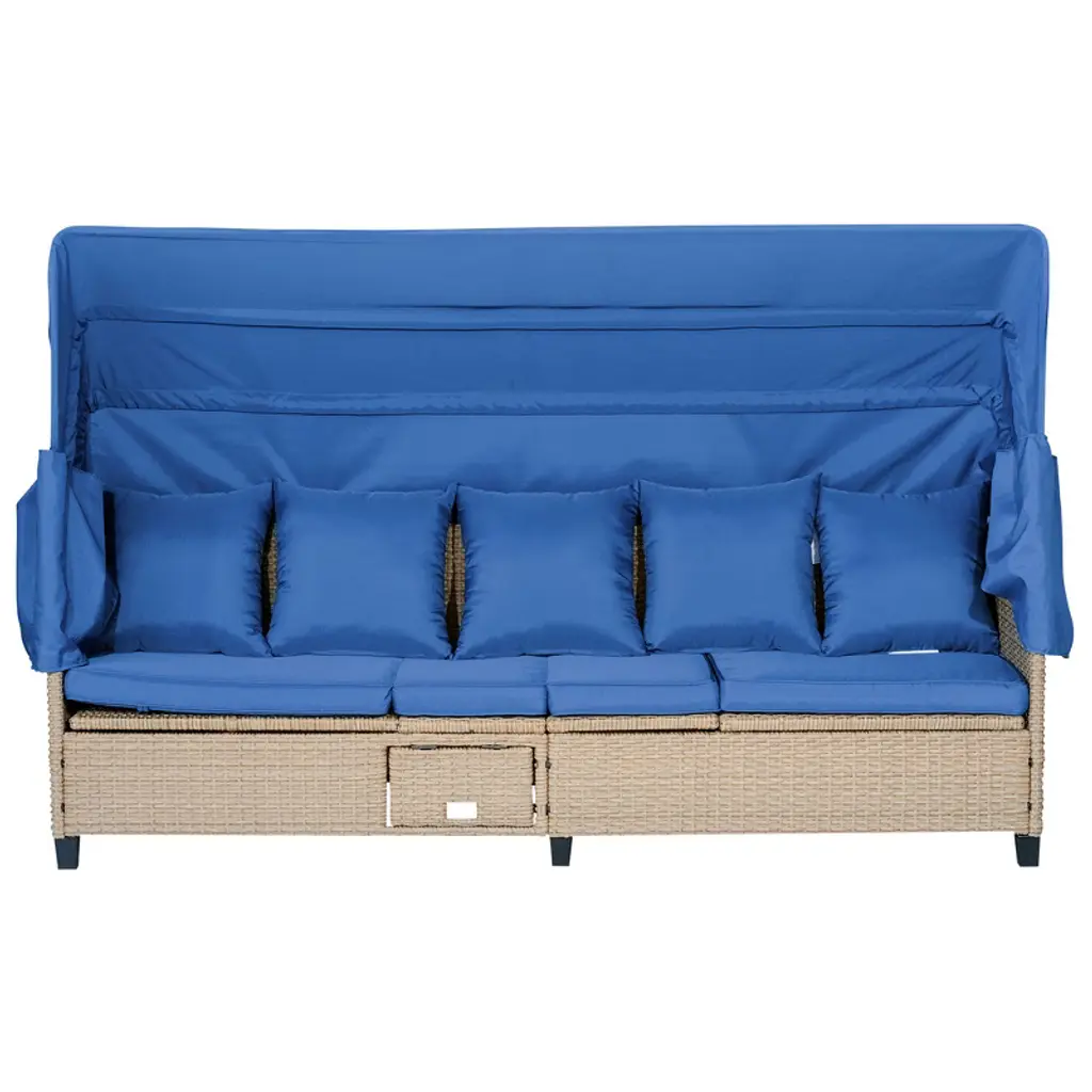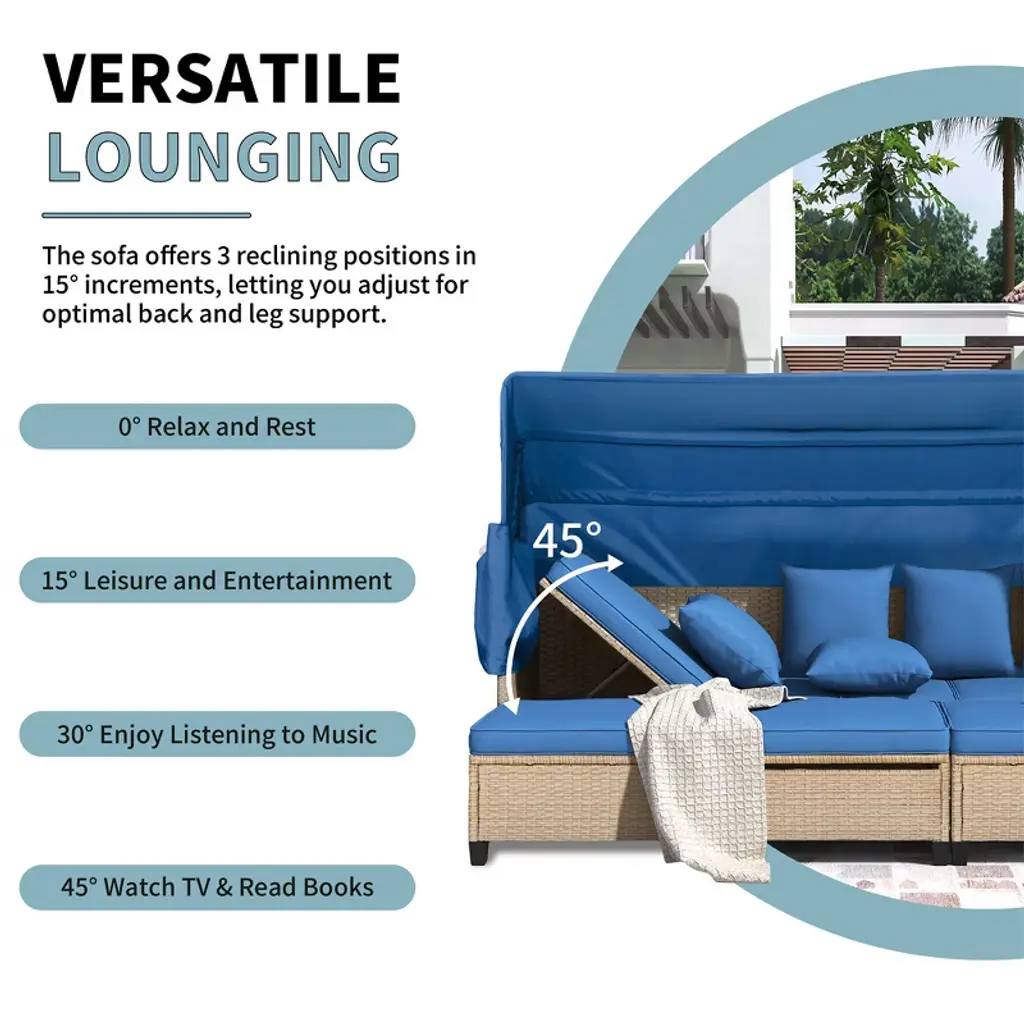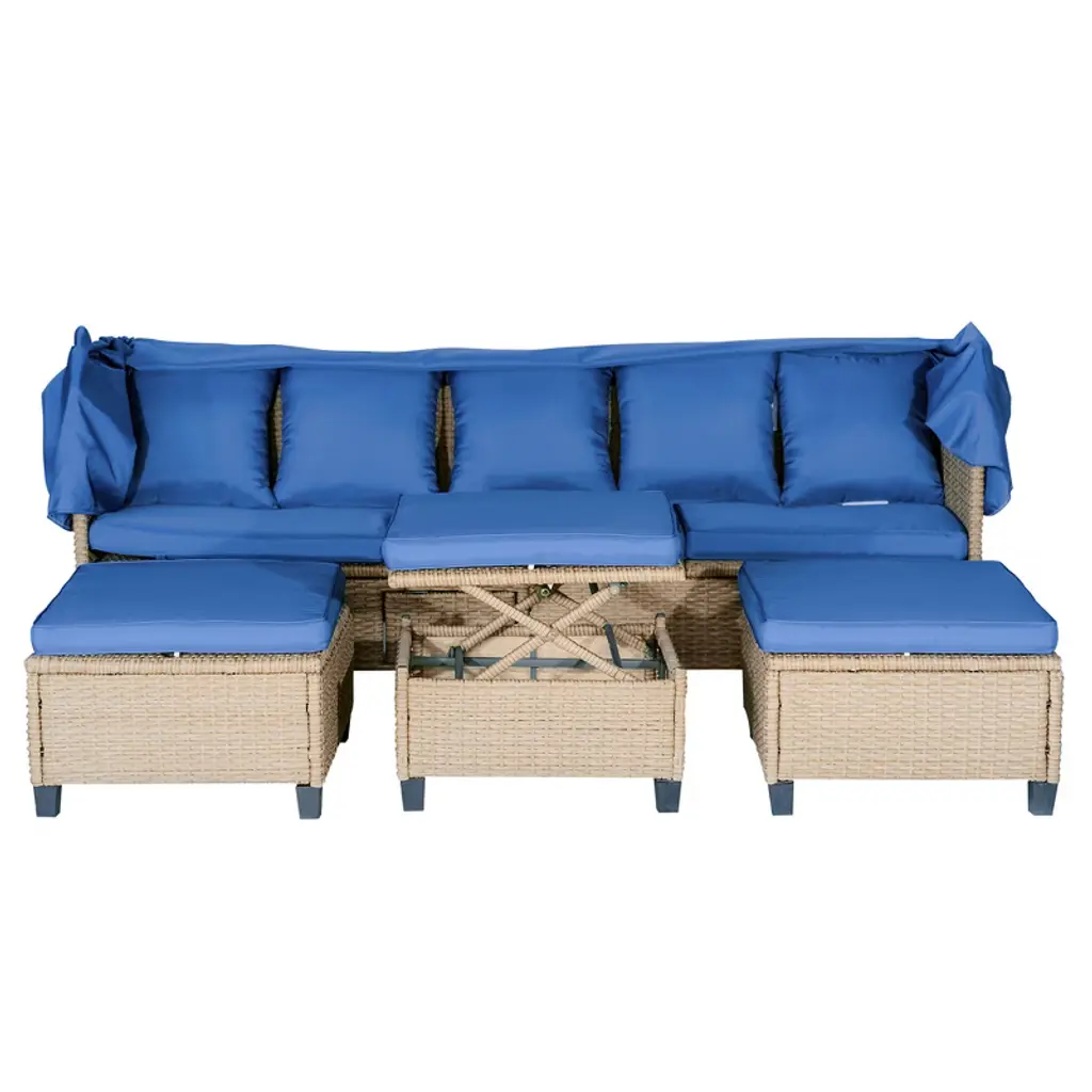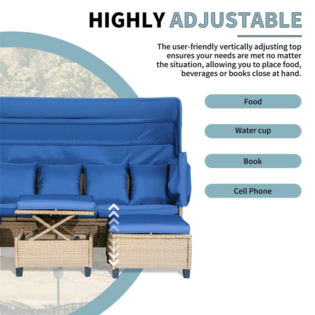 Cowlown Blue 4-piece Uv-resistant Patio Sofa Set, Retractable Canopy, Adjustable Recliners & Lift Table