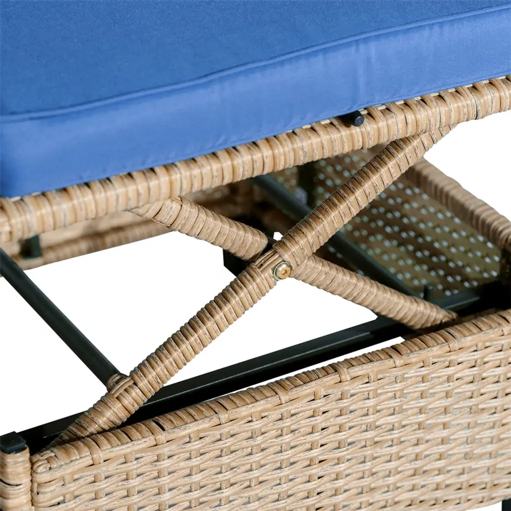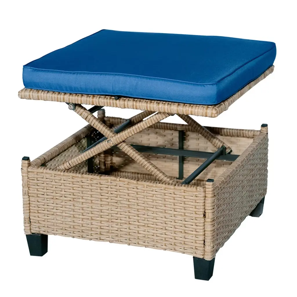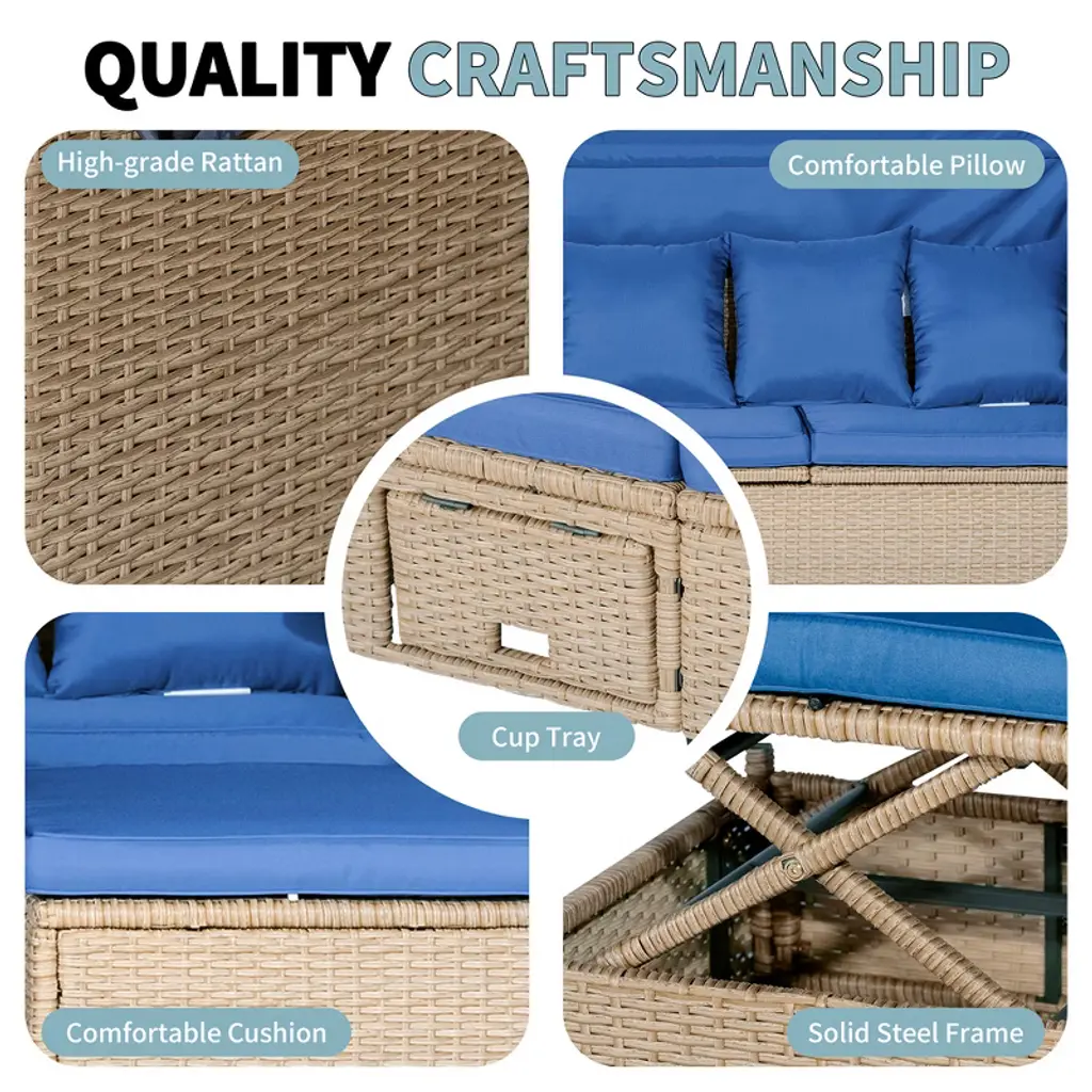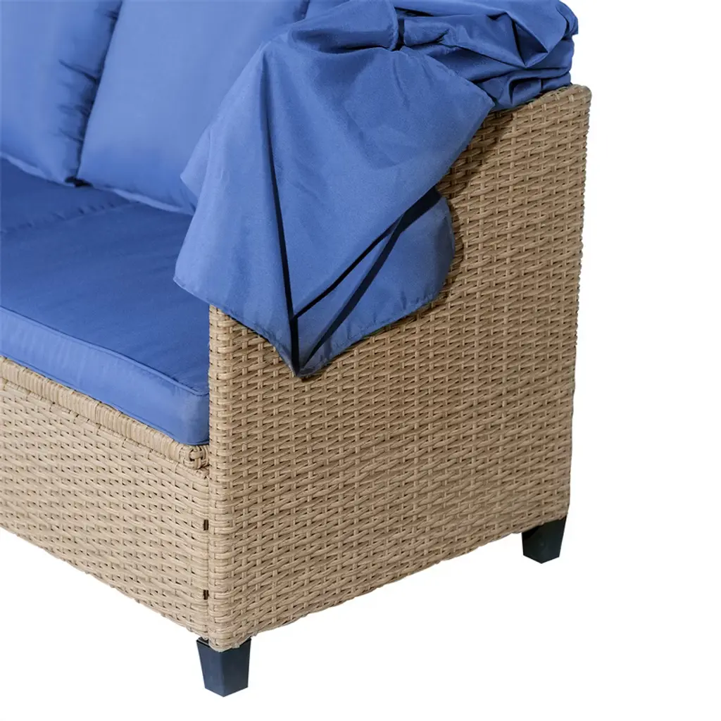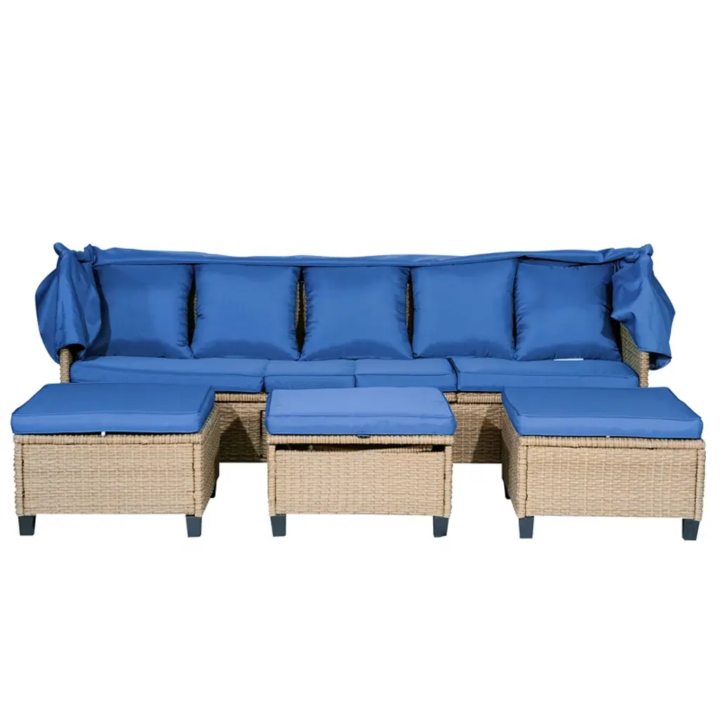 Cowlown Blue 4-piece Uv-resistant Patio Sofa Set, Retractable Canopy, Adjustable Recliners & Lift Table