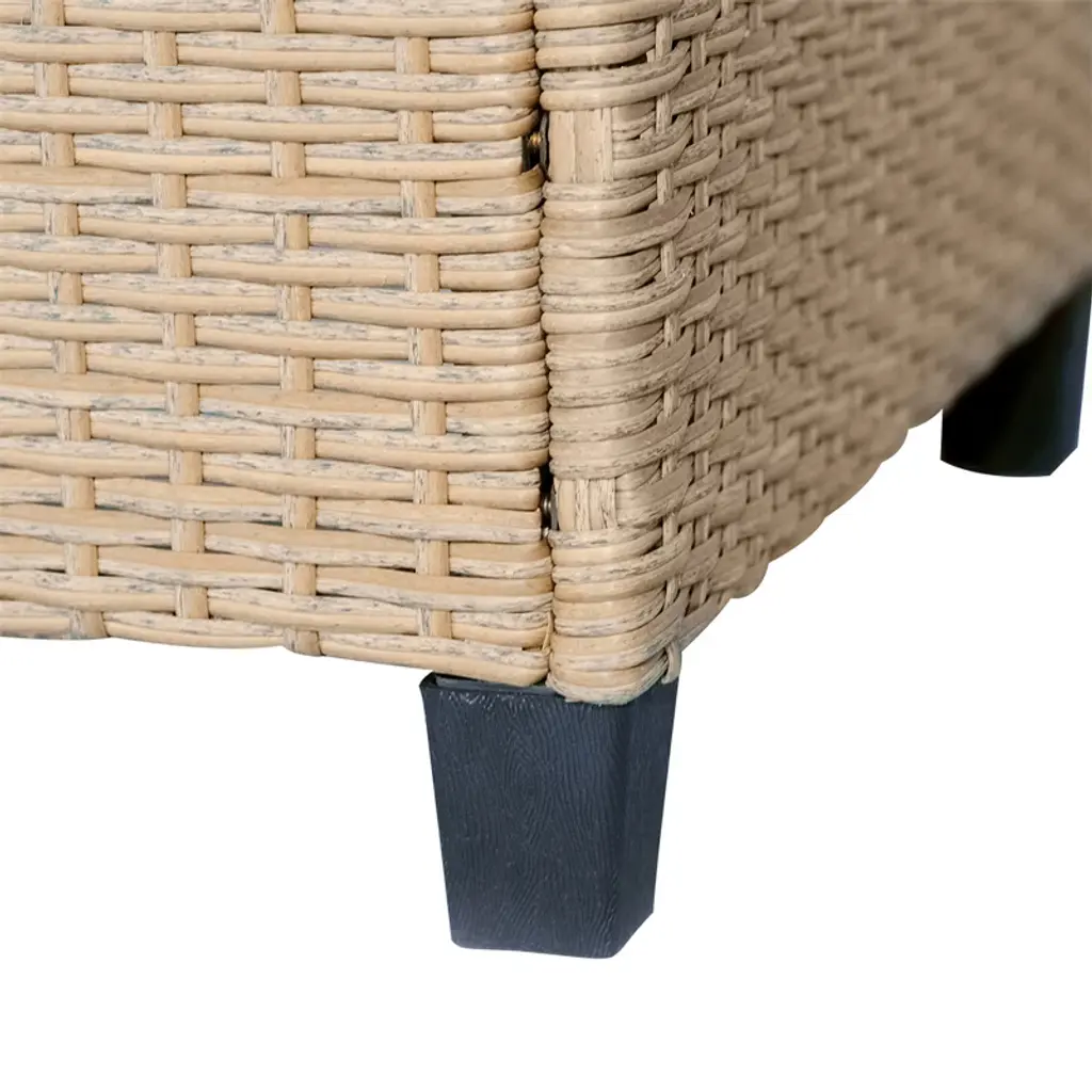 This compact 4-piece set includes a 3-position reclining sofa and 3 multi-functional ottomans (convertible to table). The innovative nesting design allows tables to store neatly under the sofa, perfect for small balconies or patios. The timeless woven wicker pattern maintains elegance while maximizing limited outdoor areas.