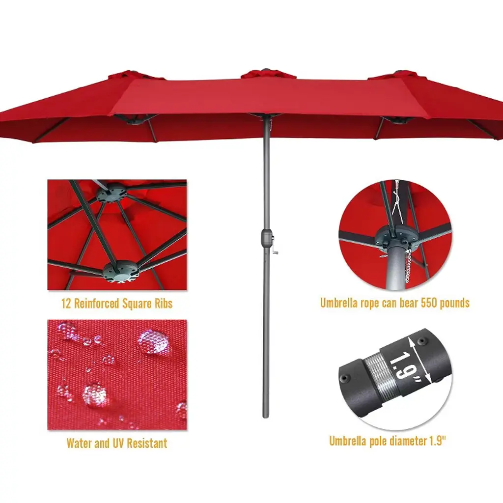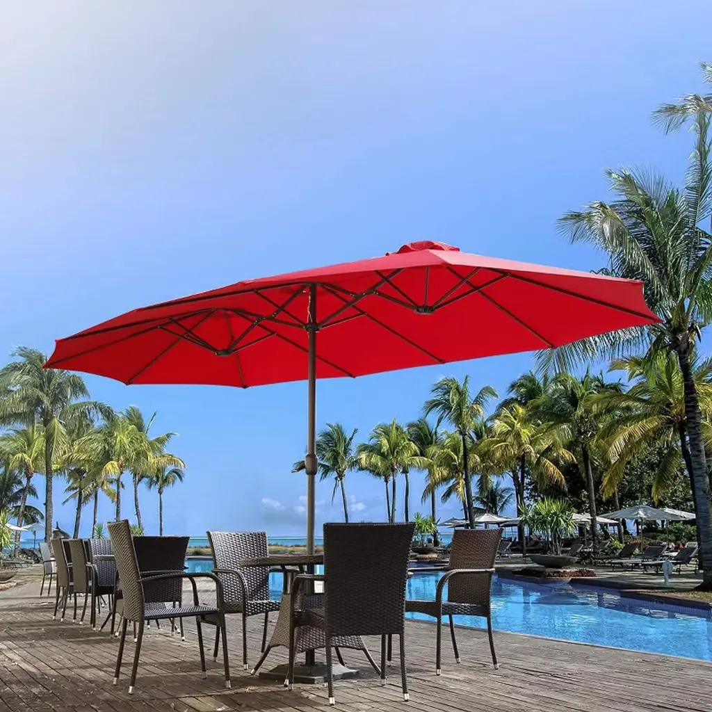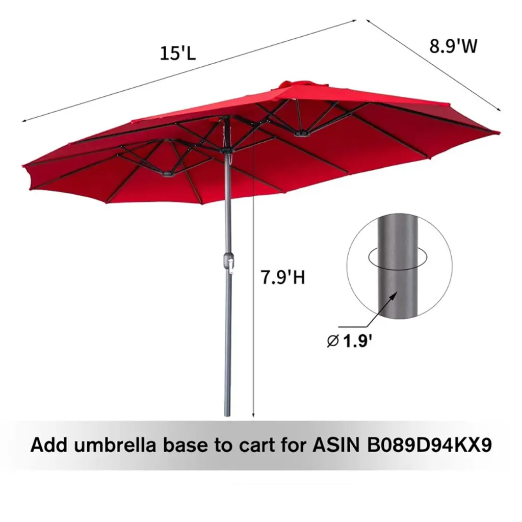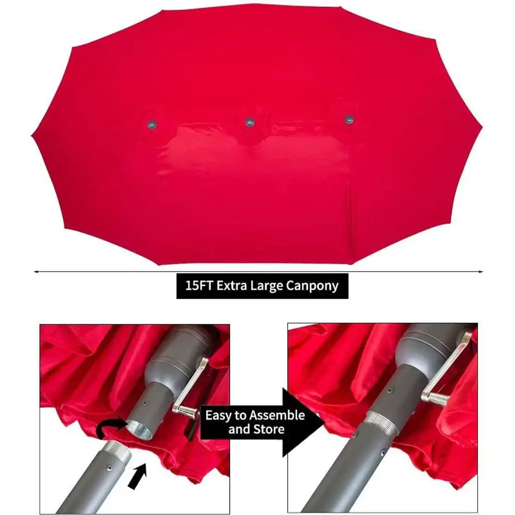 Cowlown Red Double Sided 15ft Outdoor Market Umbrella For Patio, Crank Operated, Shade For Pool, Backyard, No Base