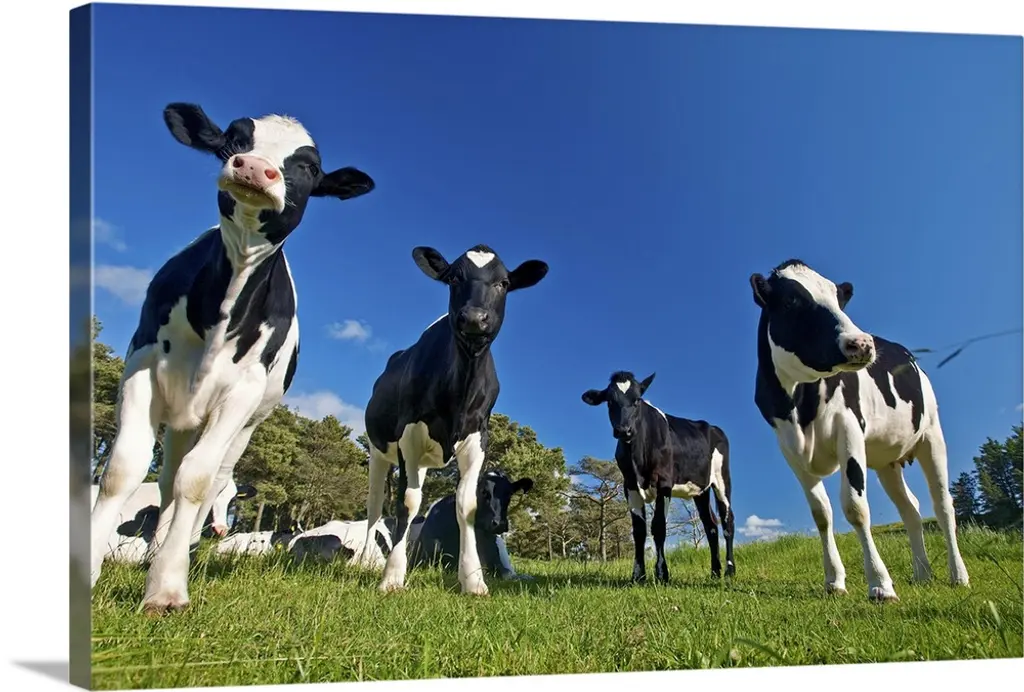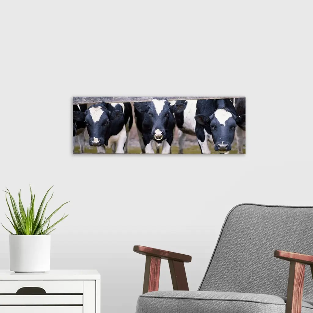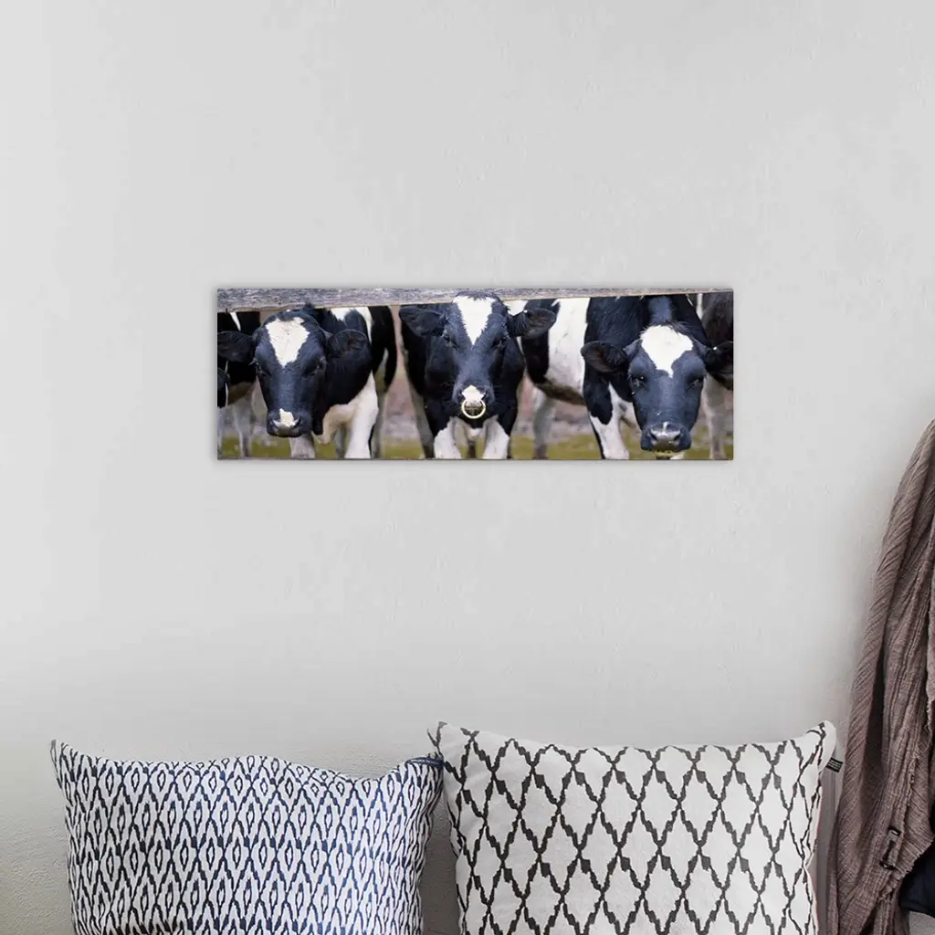 Cows and Bull looking through a fence wall art for home and office decor. Discover canvas art prints, photos, mural, big canvas art and framed wall art in GreatBigCanvas.com's varied collections.
