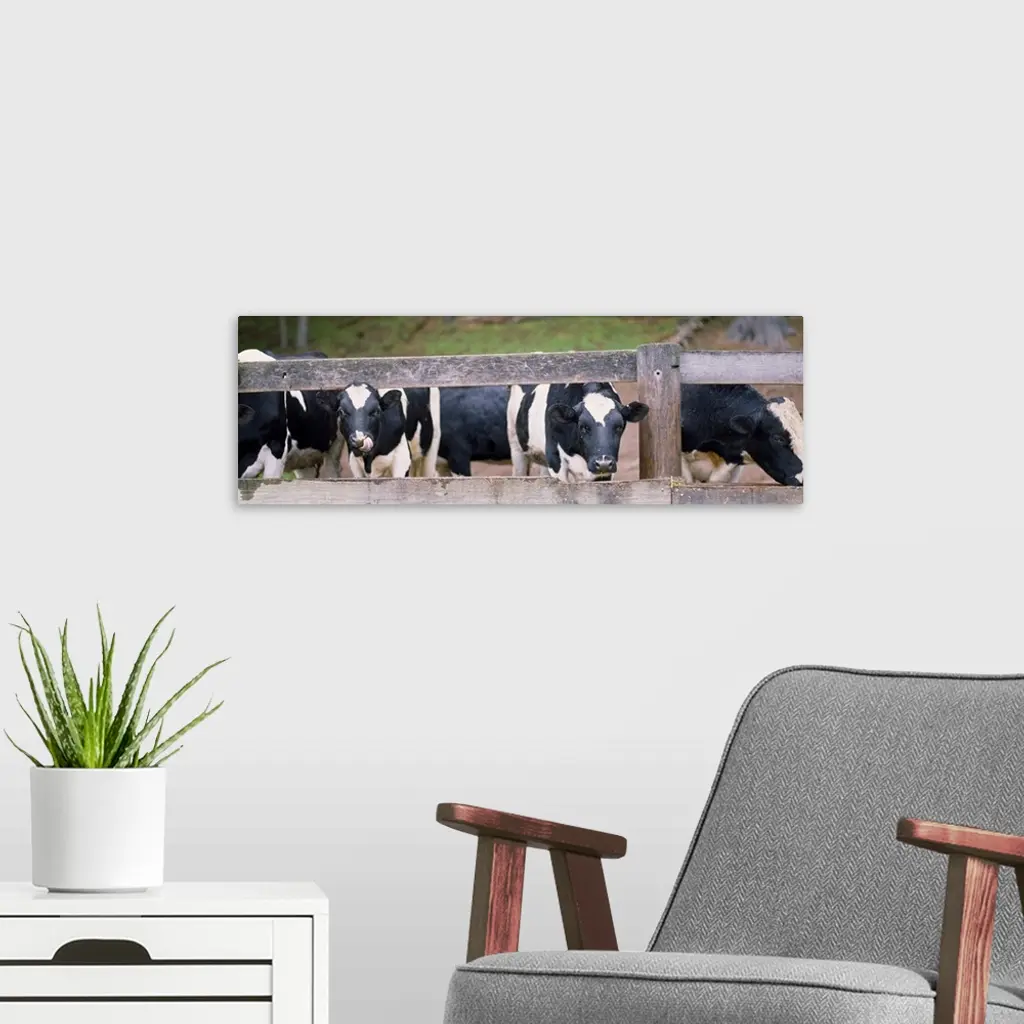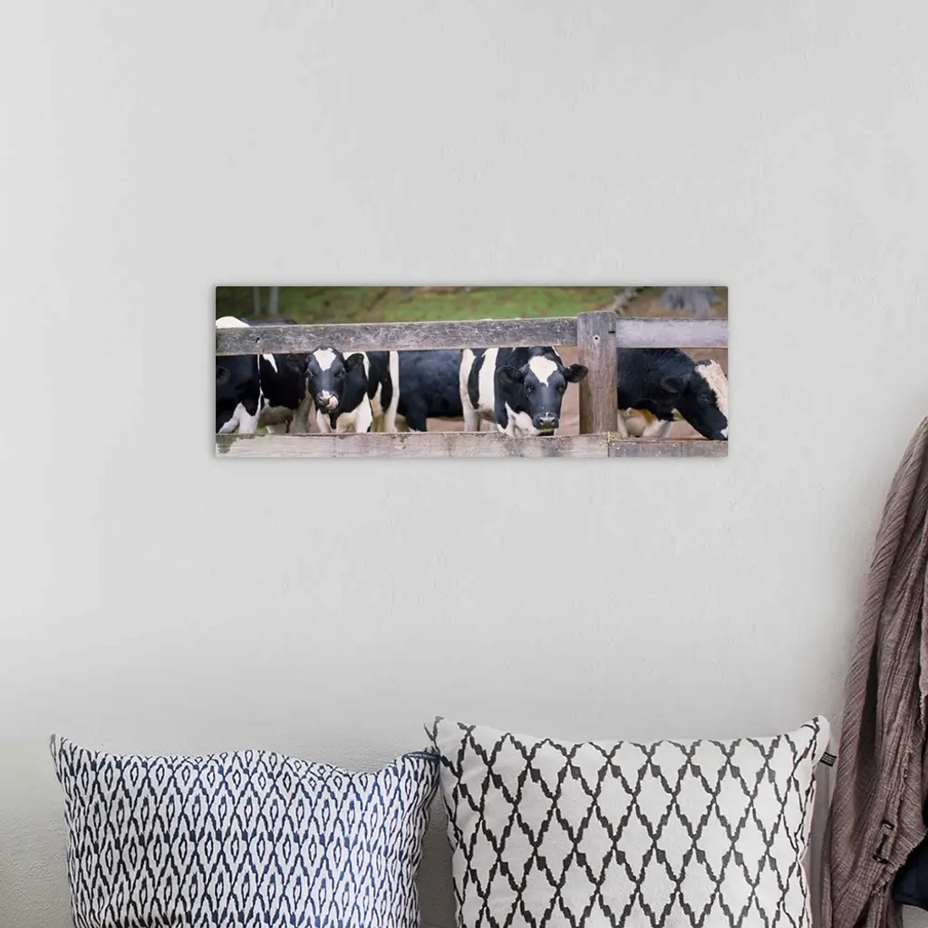 Cows looking through a fence wall art for home and office decor. Discover canvas art prints, photos, mural, big canvas art and framed wall art in GreatBigCanvas.com's varied collections.