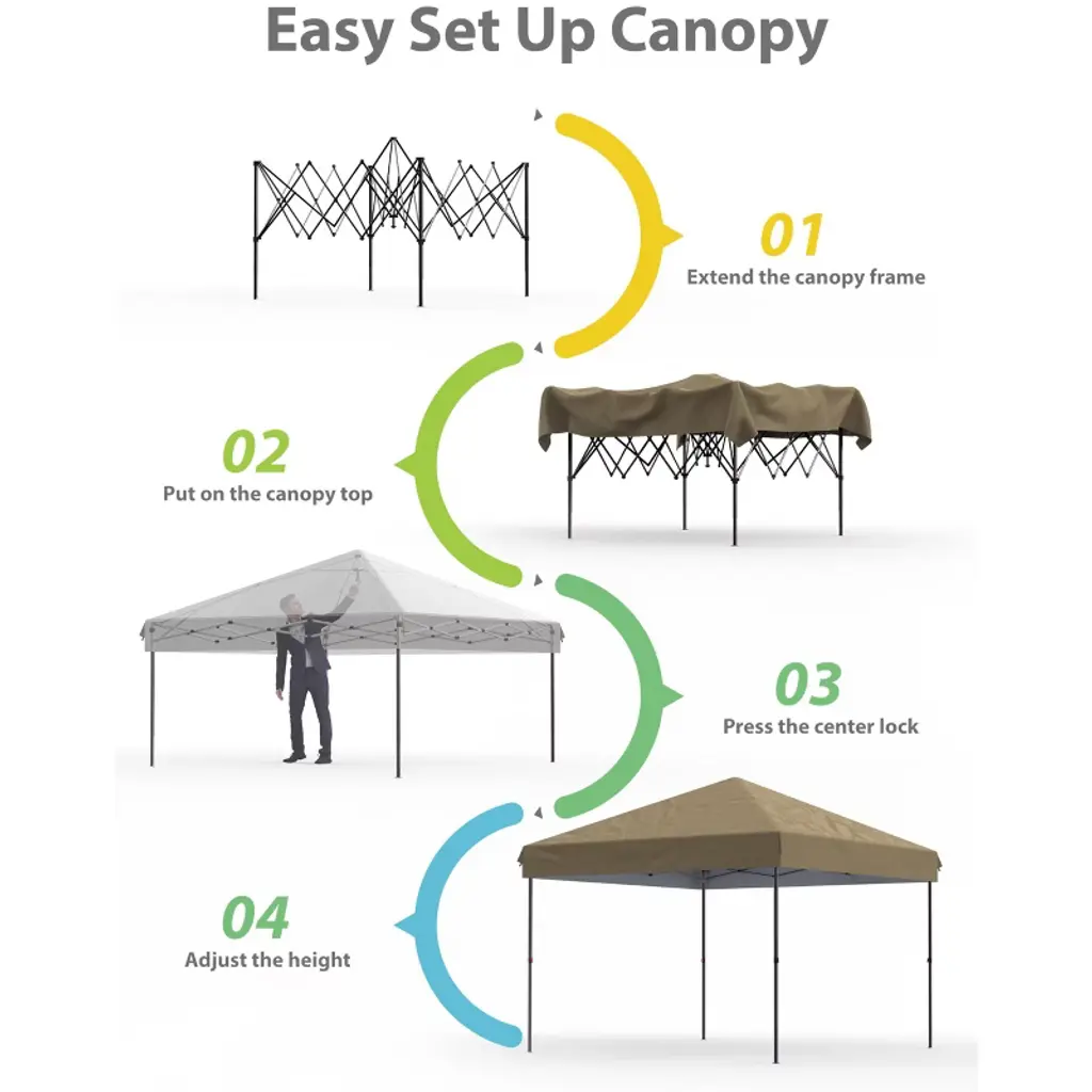 Cozony 10x10/20ft Pop-up Canopy, Adjustable Height Waterproof Outdoor Tent With Reinforced Support For Backyard, Beach, Patio