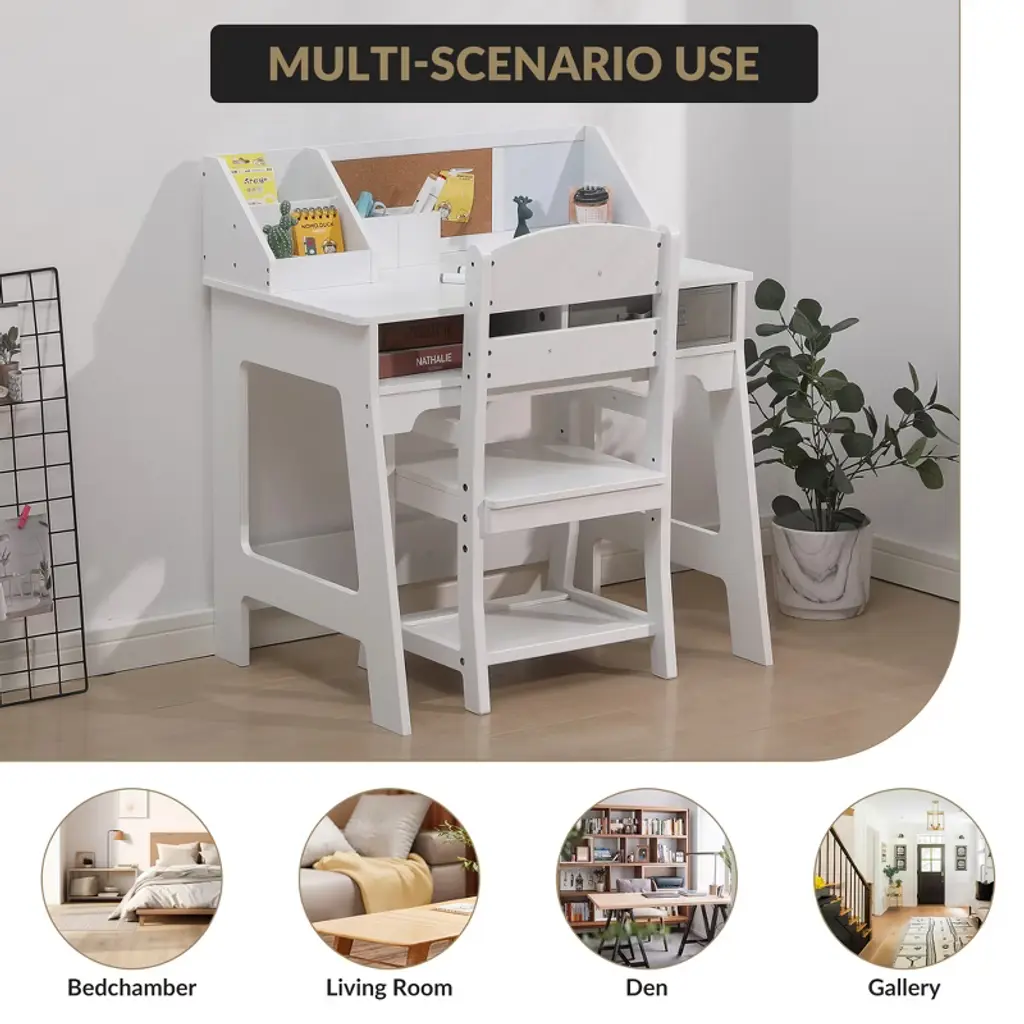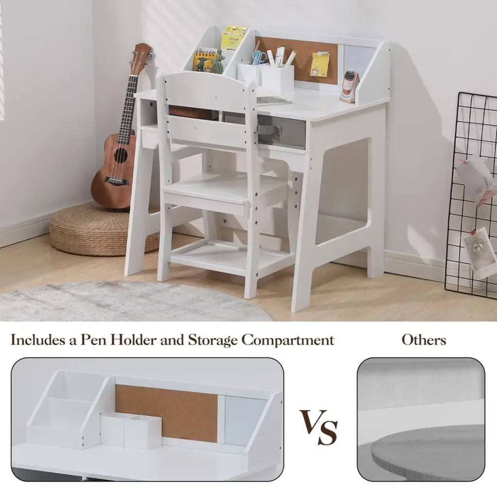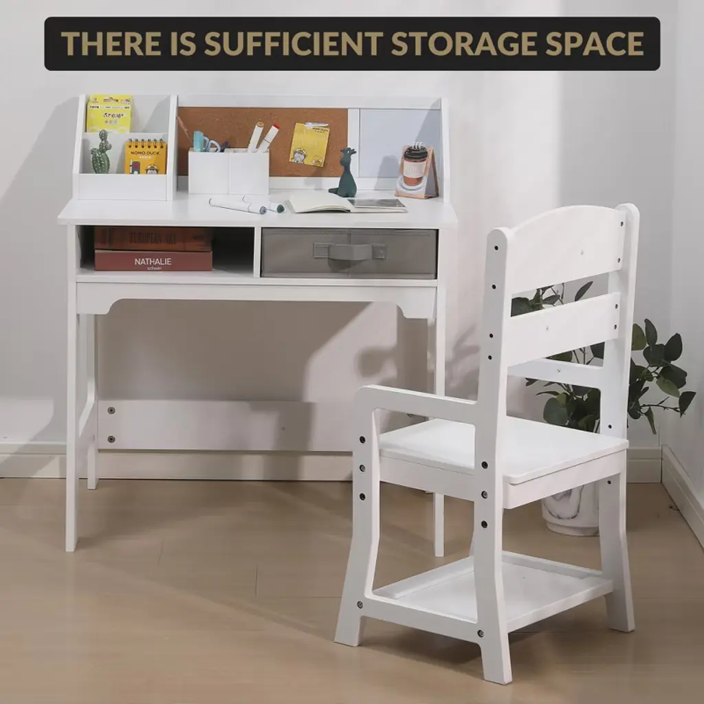 Cozony Kids Study Table Set With Adjustable Chair, Study Desk With Hutch, Bulletin Board, 2 Drawers, 2 Pen Holders
