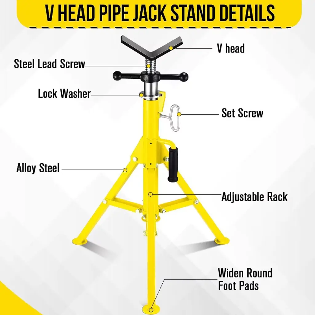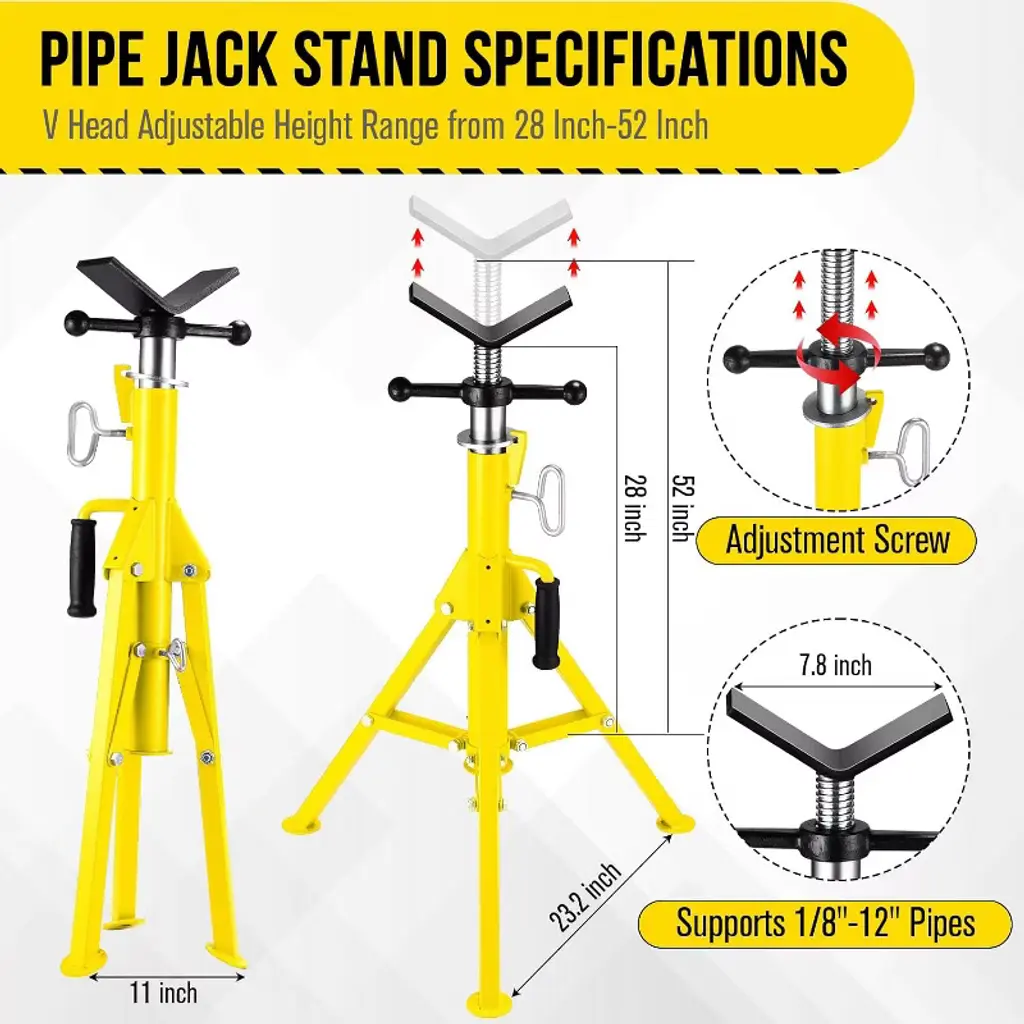 The COZONY V-Head Pipe Jack Stand is built to handle heavy-duty tasks with ease. Capable of supporting up to 2500 lbs, this jack stand features a robust V-shaped cradle for stability and is adjustable from 28" to 52" to suit a variety of project heights. Constructed from heavy-welded carbon steel and coated with an anti-corrosion finish, it’s durable and long-lasting, designed to resist wear and tear. The folding legs and slip-proof rubber handle provide easy storage and portability, making it a versatile choice for welding, pipe threading, auto repair, and more.