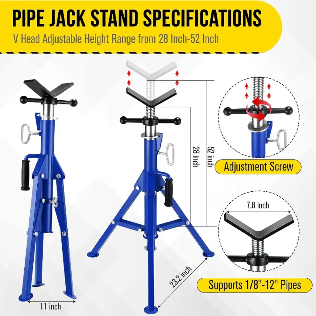 Cozony V-head Pipe Jack Stand, 2500lb Capacity, Adjustable Height 28"-52", Steel With Folding Legs, Portable Tripod For Welding & Pipe Threading