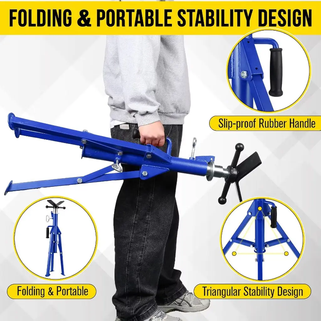 The COZONY V-Head Pipe Jack Stand is built to handle heavy-duty tasks with ease. Capable of supporting up to 2500 lbs, this jack stand features a robust V-shaped cradle for stability and is adjustable from 28" to 52" to suit a variety of project heights. Constructed from heavy-welded carbon steel and coated with an anti-corrosion finish, it’s durable and long-lasting, designed to resist wear and tear. The folding legs and slip-proof rubber handle provide easy storage and portability, making it a versatile choice for welding, pipe threading, auto repair, and more.