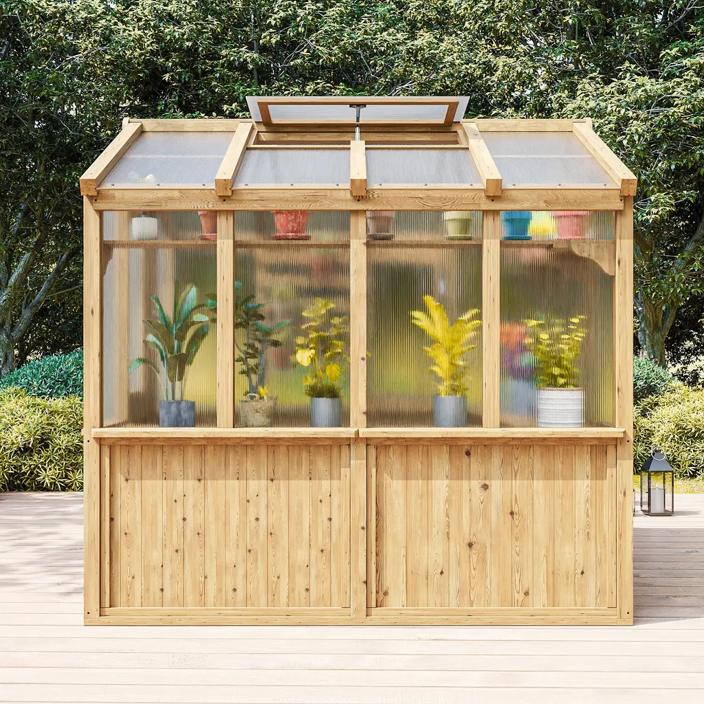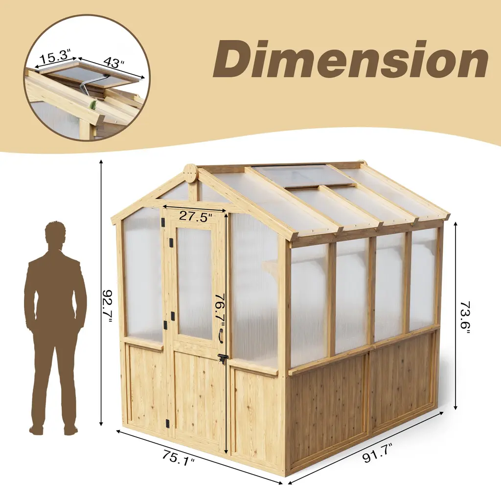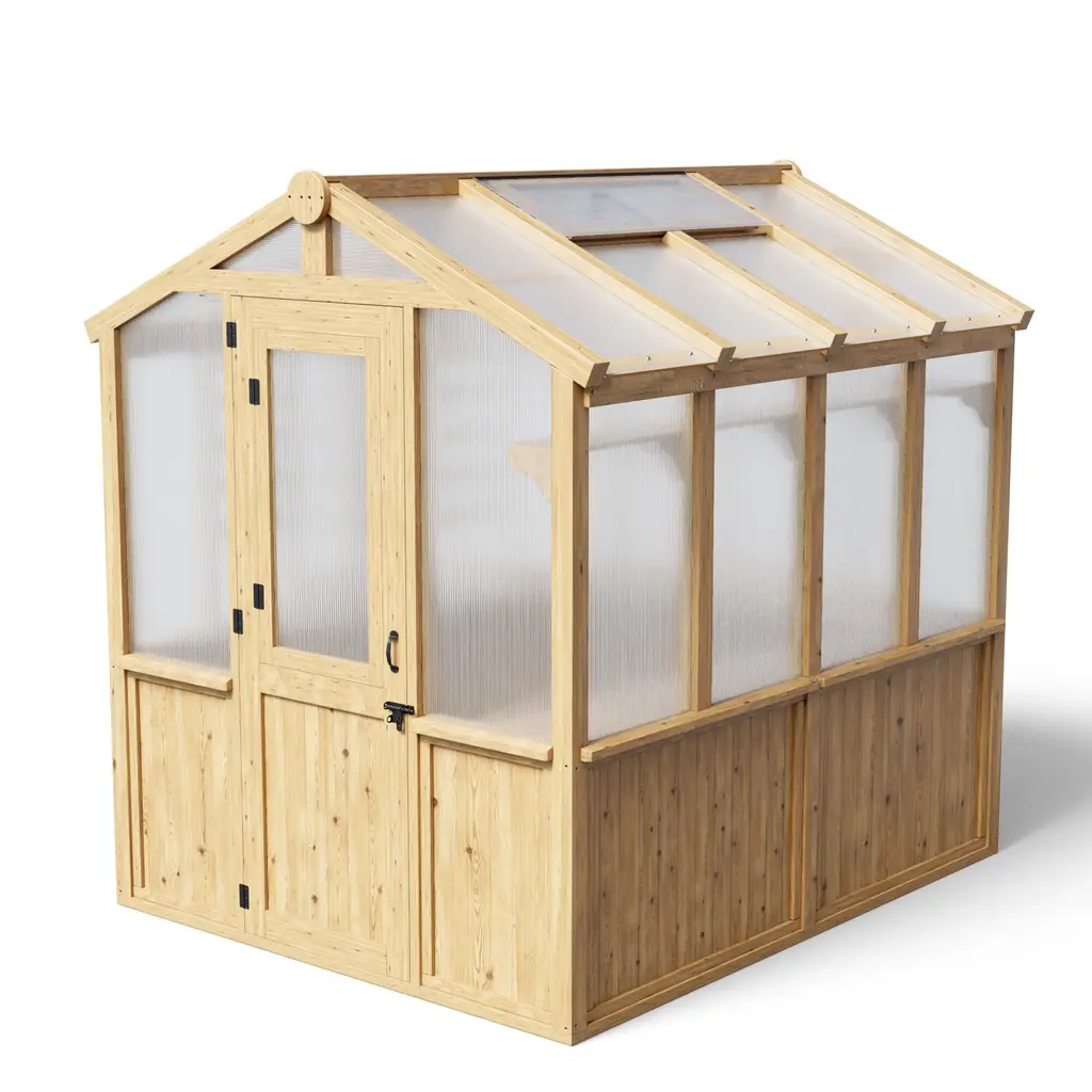 Cozywor 6.8 X 7.8 Ft Spruce Wood Frame Walk-In Greenhouse With Automatic Vent Window, Natural - 6.8" X 7.8" - 6.8" X 7.8"