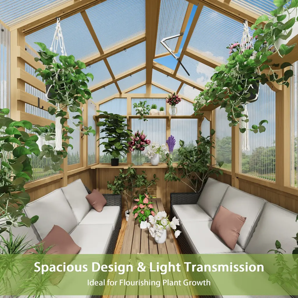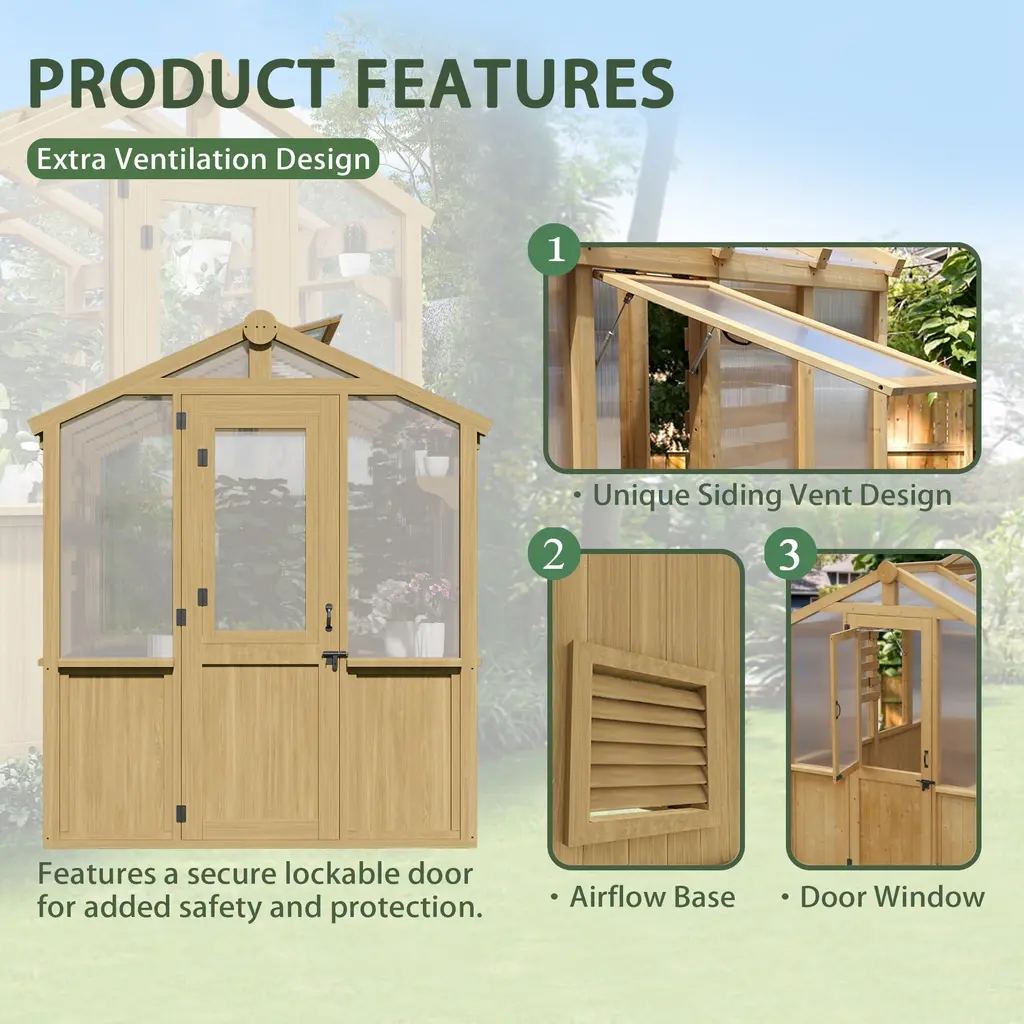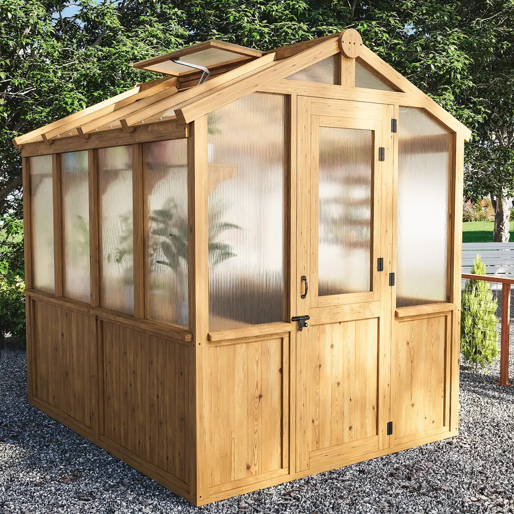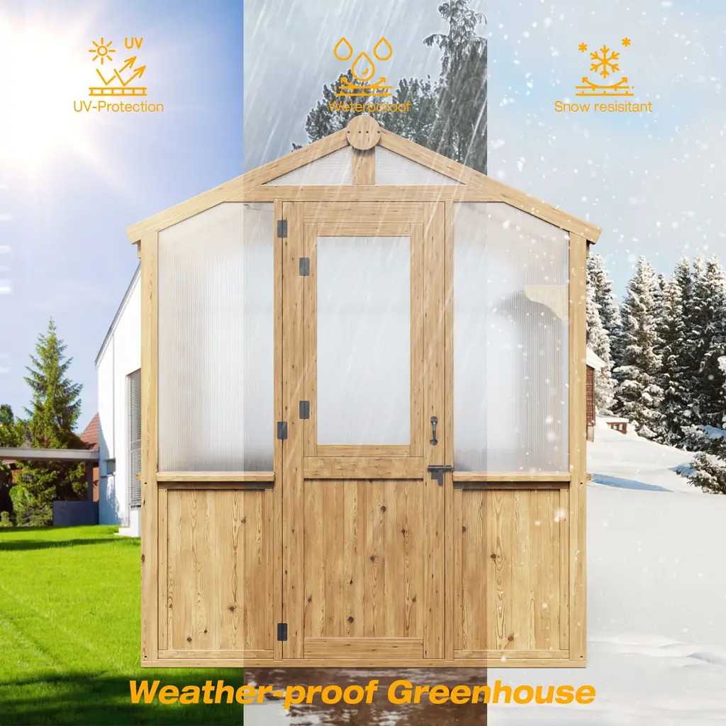 Cozywor 6.8 X 7.8 Ft Spruce Wood Frame Walk-In Greenhouse With Automatic Vent Window, Natural - 6.8" X 7.8" - 6.8" X 7.8"