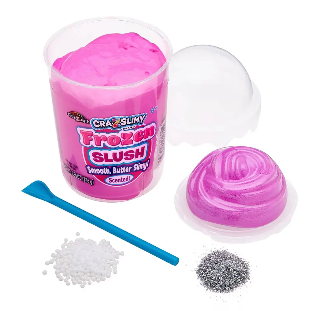 Get ready for the coolest slime treat with our Cra-Z-Slimy Frosty Drinks! Prepare your ultimate frosty creation with our fun mix ins included! Awesome scents paired with the most buttery and smooth slime stored in our cool frosty container. That’s not all – it also comes with a spoon for the most realistic pretend play! Whether you're mixing, squishing, or pretending to sip your icy creation, this Frosty Drink is the perfect chill-time activity for slime-loving kids!