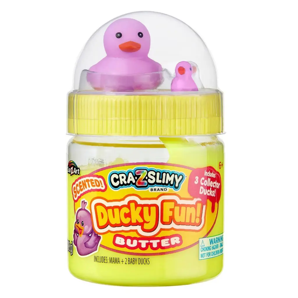 Get ready for some Ducky Fun with our Cra-Z-Slimy Duck Dome Jars! Each jar is filled with the most super soft and smooth butter slime! Perfect for stress-free and creative play. Each jar comes with a mama and two baby collectible duck charms. Beautifully displayed in our fun dome lids! Get ready for endless fun of squishing, stretching and creating! Collect them all!