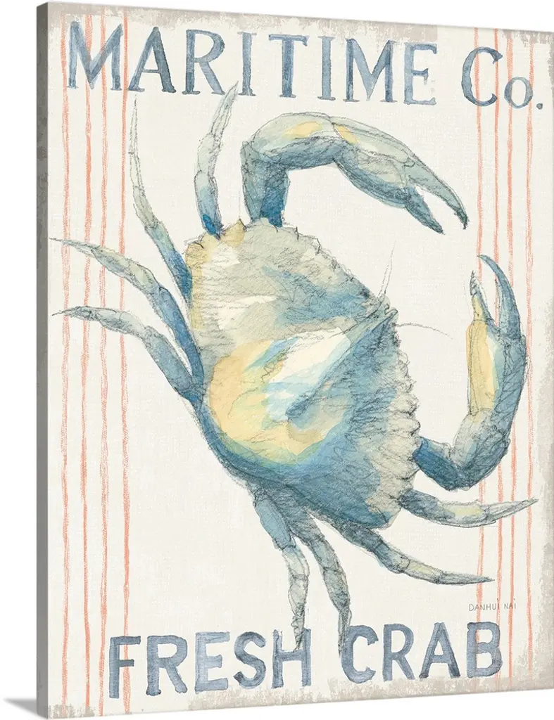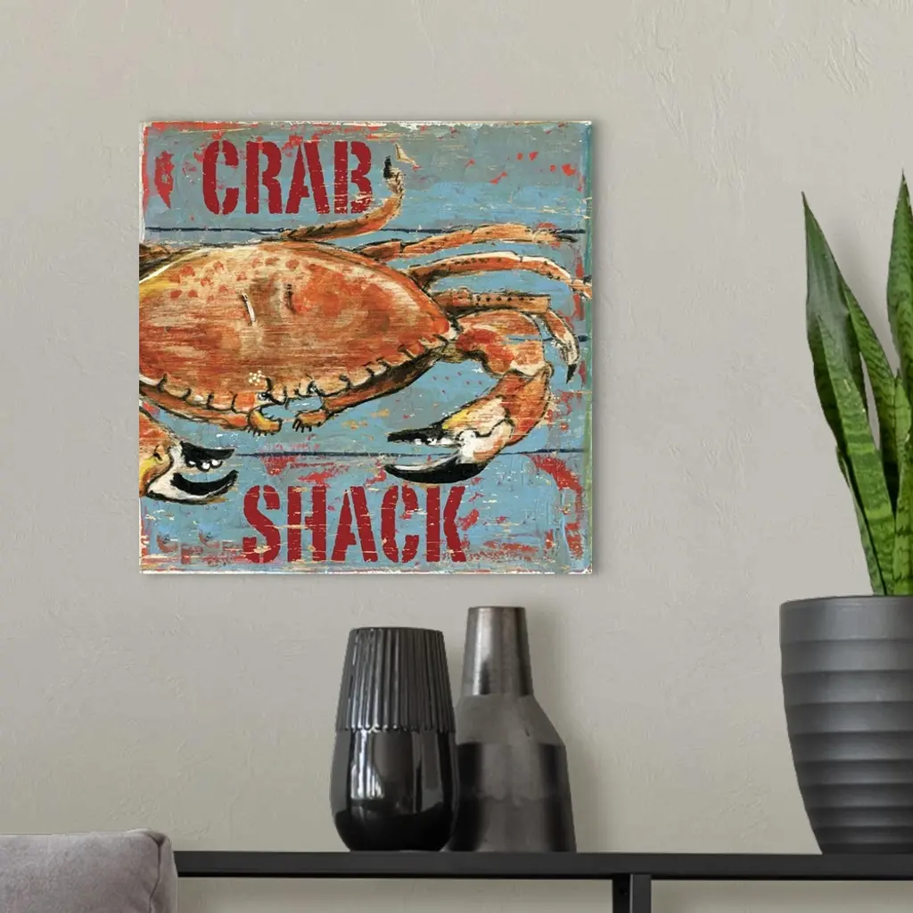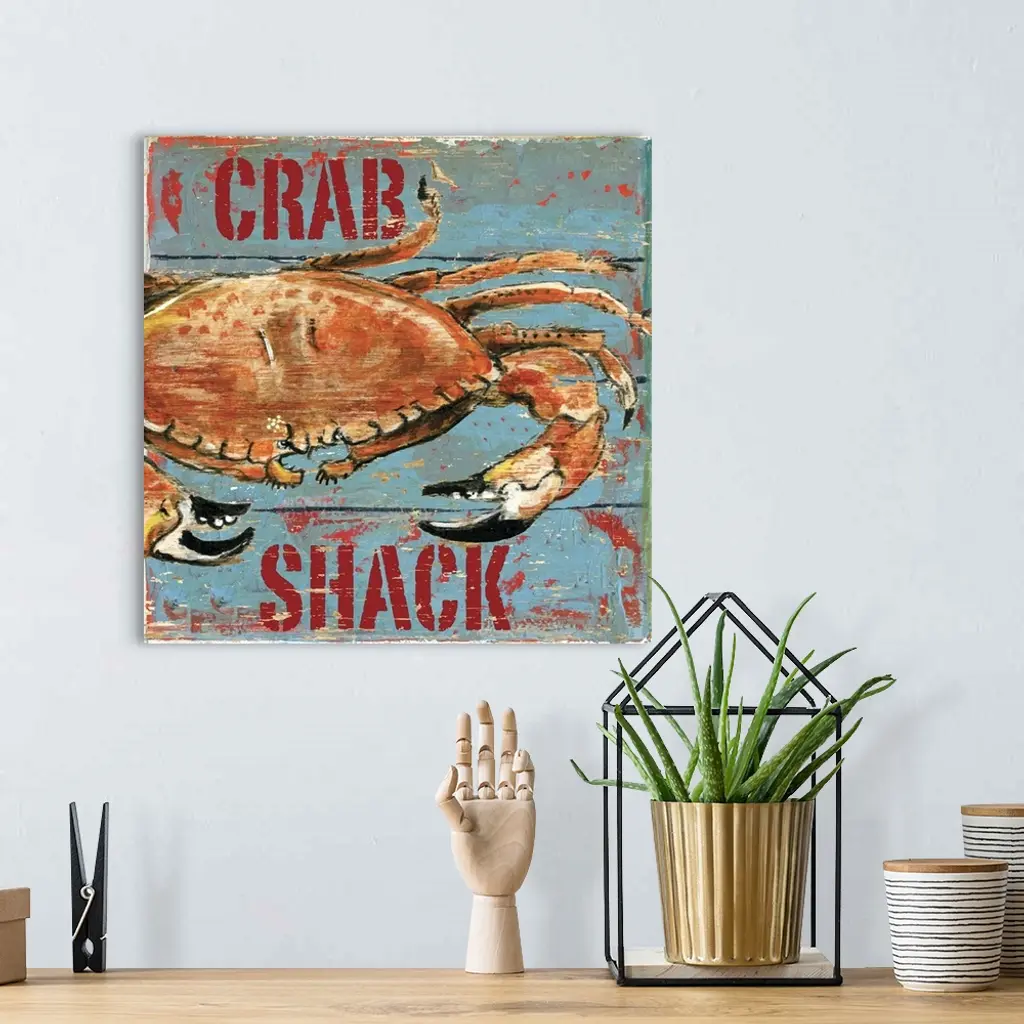 Rustic, weathered graphic depicting a crab, perfect for a seafood restaurant.