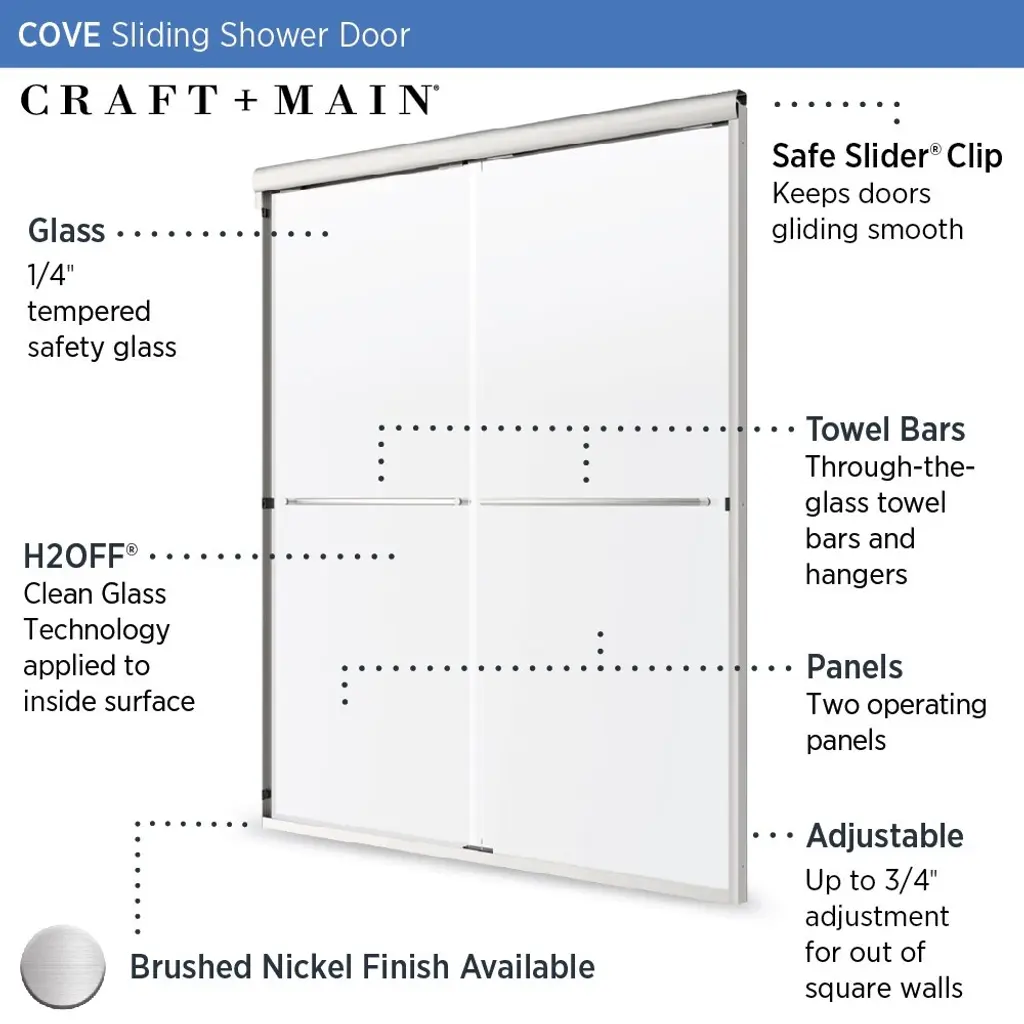 Craft + Main Cvss5870-Cl Cove 70" High X 58" Wide Sliding Framed - Brushed Nickel