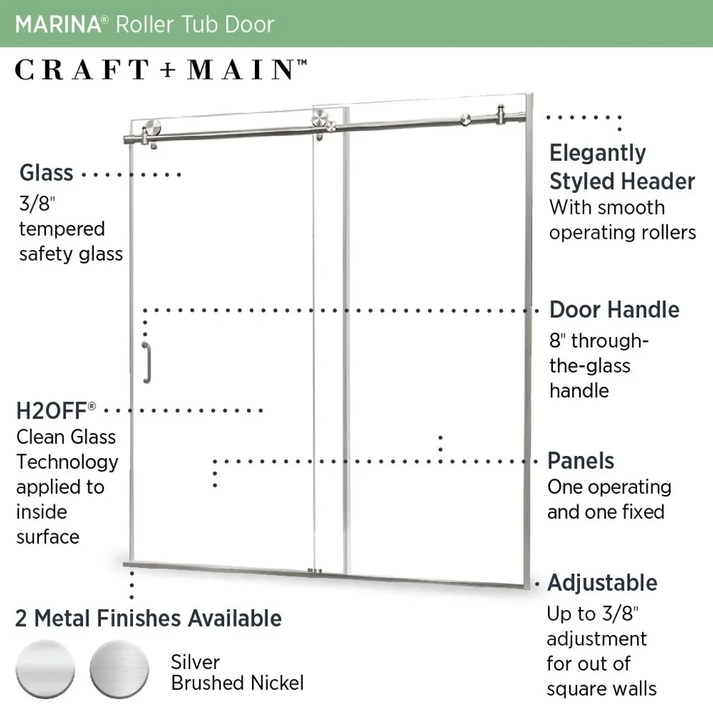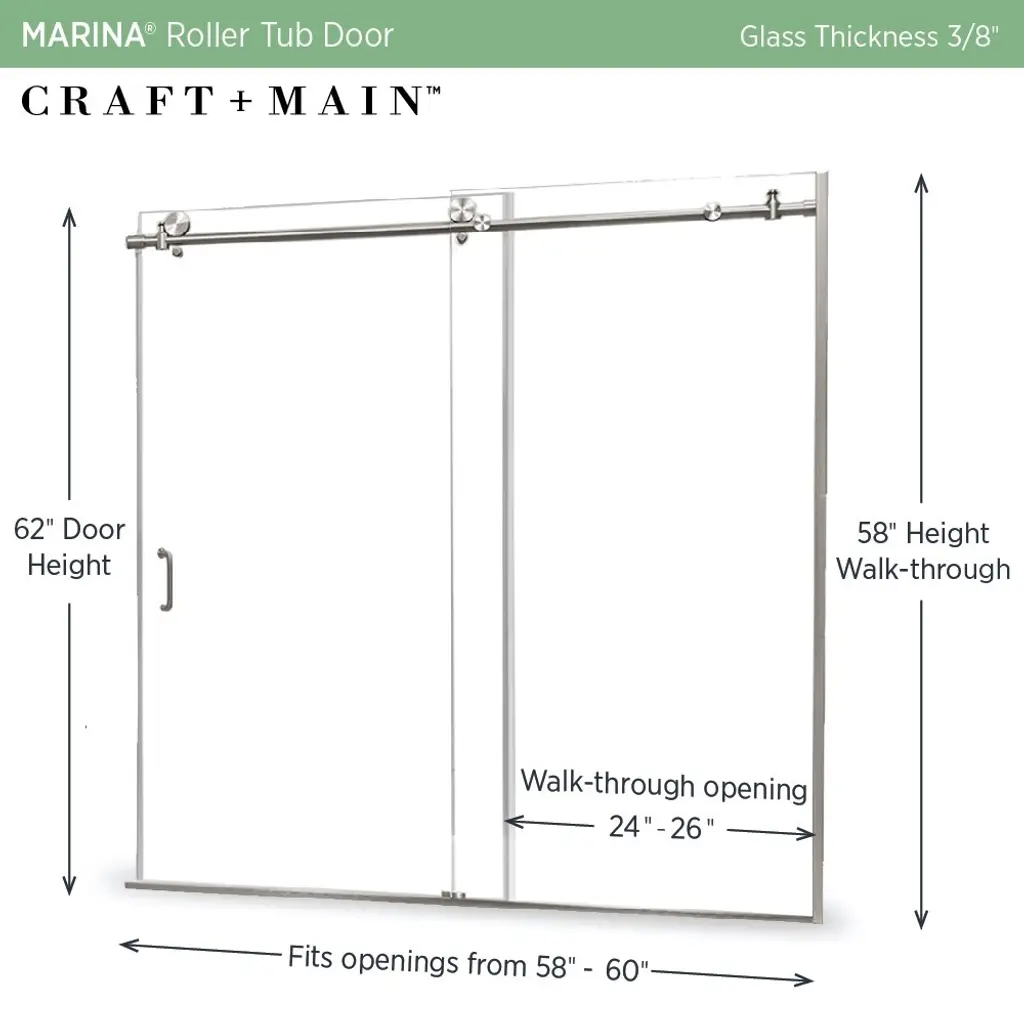 Craft + Main Mrrl6062-Cl 62" High X 60" Wide Sliding Shower Door With - Brushed Nickel