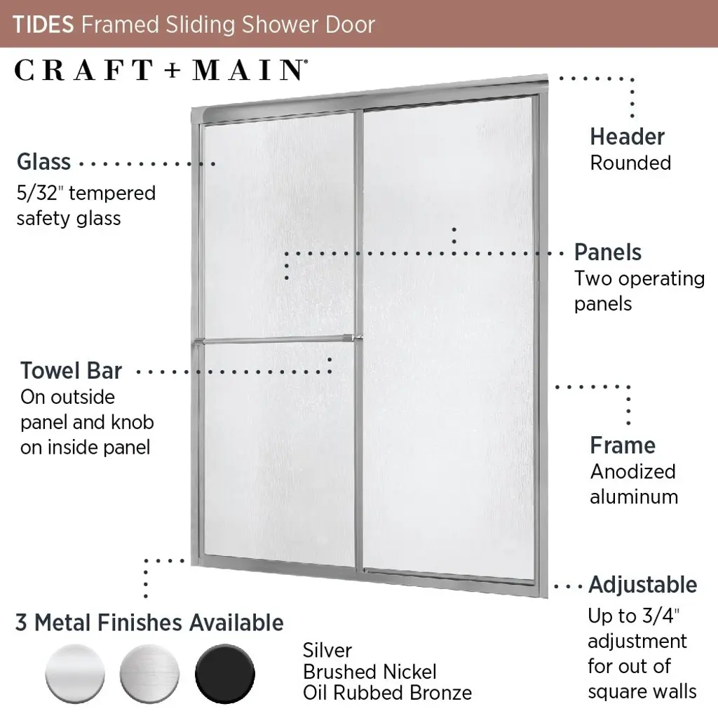 Craft + Main Tdss6070-Rn Tides 70" High X 60" Wide Sliding Framed - Silver