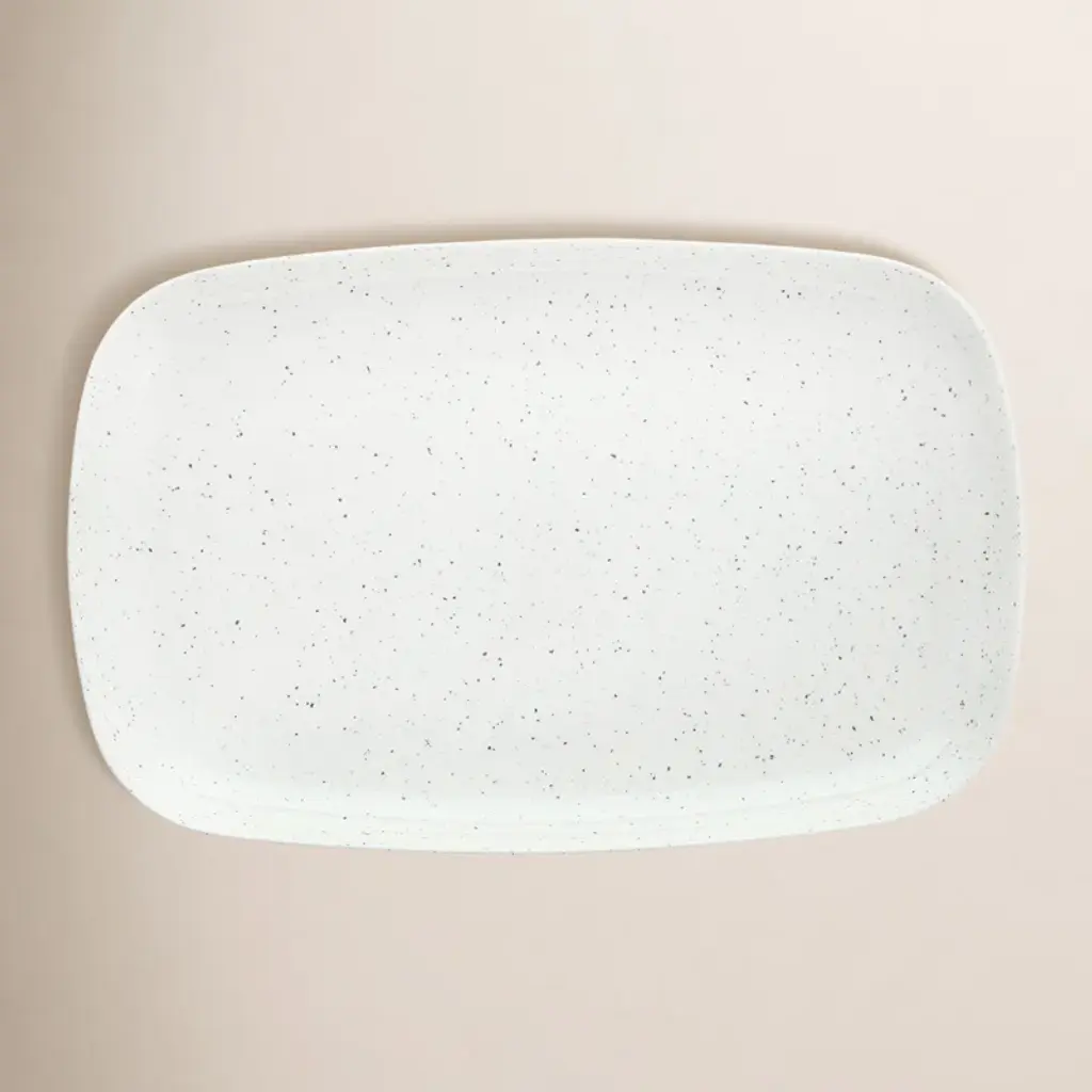 A study in delicious contradictions, our Craft serving platter is strong and durable yet light and refined with a warm minimalism that suits everyday use and elegant occasions. A lightly speckled white glaze coats the oval platter's clean coupe curves. Ideal for serving salads, entrees and appetizers, the white platter combines with our other Craft dinnerware and table linen collections to set a modern table.
