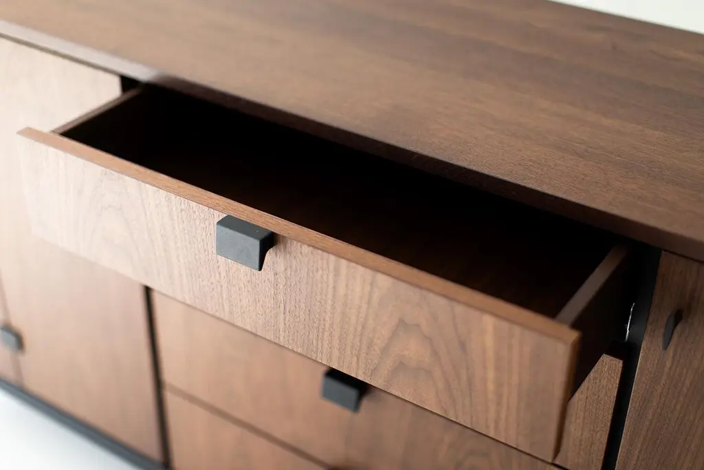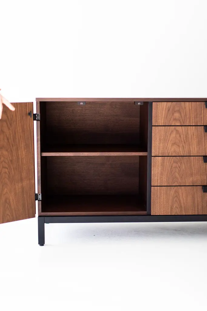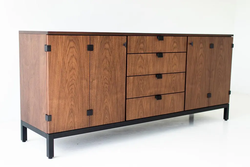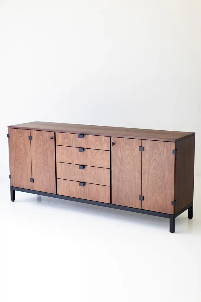 CraftAssociates Buffet, Milo Baughman Buffet, WalnutThe Milo Baughman Buffet for Craft Associates® Furniture is expertly crafted. These are a licensed reintroduction from Craft Associates. This piece is shown in a solid walnut frame. The front doors and back are a finished veneer. The interior drawers are made from solid walnut. Craft Associates Furniture is proud each piece is made in the US. We strive to craft a product that will stand the test of time. We use the best materials and have the best craftsman in the business. We Stand 100% behind our product. All pieces are available in walnut, teak or maple. As each piece is made per client sizing, wood species and finish can be customized. Designed by Milo Baughman, this buffet carries forward his legacy of clean lines, elegant forms, and functionality. It’s more than just a piece of furniture; we're proud to carry on Baughman’s enduring influence on modern design."Contemporary design at its timeless best." One of the most influential American furniture designers of the late 20th century, Milo Baughman, embodied contemporary design and adeptness in every creation. His work mainly revolved around residential furnishings. His Gallery 1 includes a variety of useful and simple contemporary pieces for the home. Drawing inspiration from fellow Californians Charles and Ray Eames, Baughman’s designs exuded a relaxed and breezy air, steering clear from ostentatious designs. His aesthetic simplicity was exceptionally profound, relying heavily on sturdy flat-bar chromed metal for seating and table frames, beautifully figured wood veneers and balanced geometric proportions. Designer: Milo BaughmanManufacturer: Craft Associates® Modern FurniturePeriod/Model: Mid Century ModernSpecs: Walnut dimensions H: 31"W: 72"D: 18"pricingPricing to trade: YesSKU: CraftAssociates Buffet, Milo Baughman Buffet, Walnut
