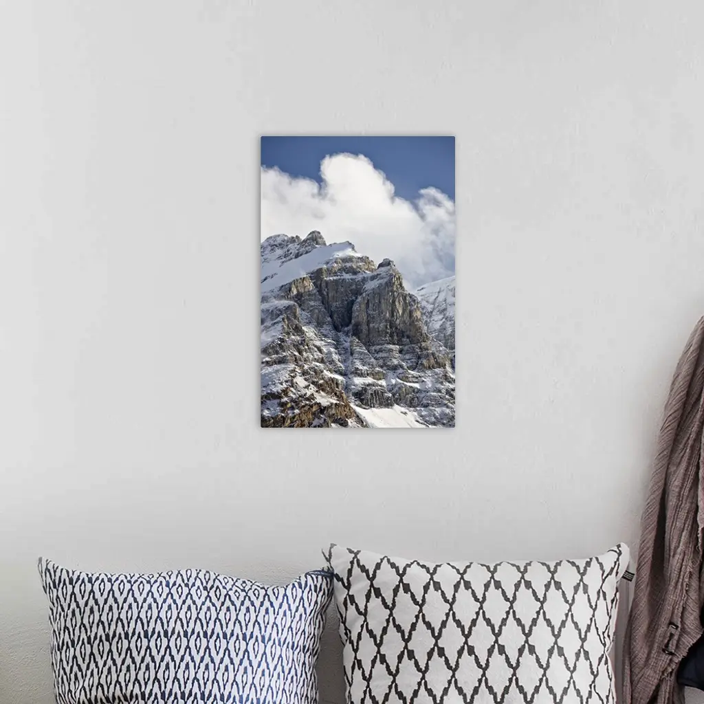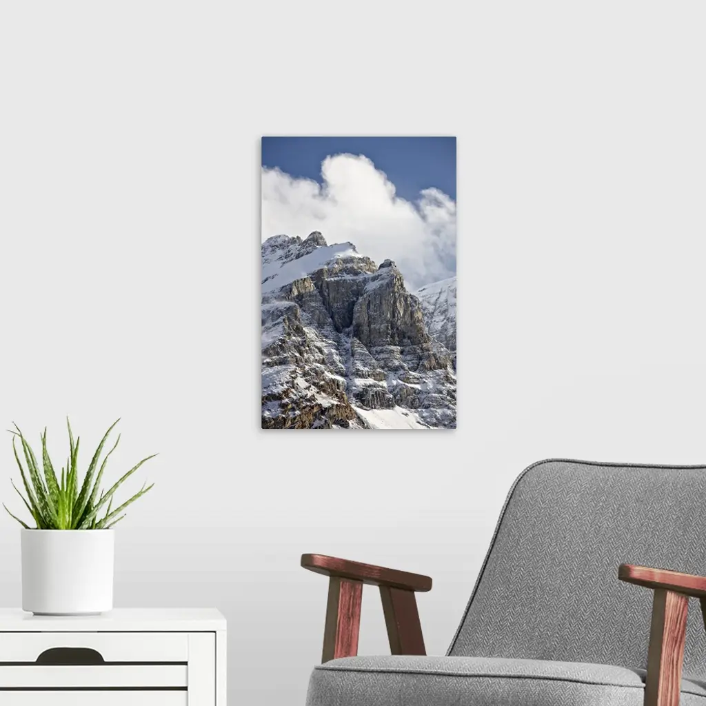 Craggy mountains with clouds and snow cover, Jasper National Park, Alberta, Canada wall art for home and office decor. Discover canvas art prints, photos, mural, big canvas art and framed wall art in GreatBigCanvas.com's varied collections.