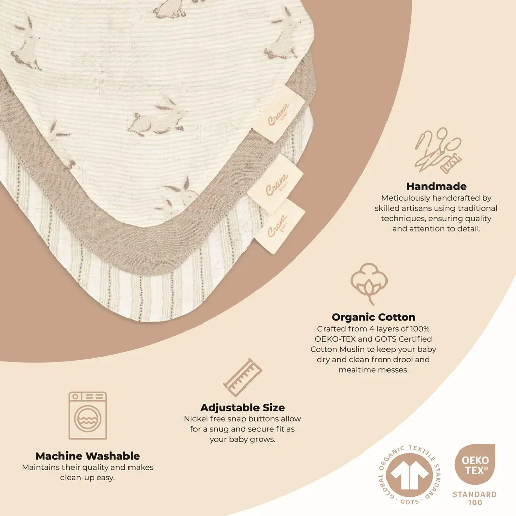 Crane Baby Organic 3-Pc. Bunny Bib Set - Off White
