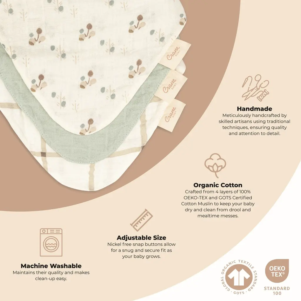 Embrace mealtime with our Avery Organic Bib Set. This set features three charming bibs, each hand-crafted from GOTS and OEKO-TEX certified organic cotton. The adorable bunny print, neutral gray print, and vintage inspired striped pattern add a whimsical touch to feeding time. The bandana design, coupled with adjustable snaps, ensures a comfortable fit for your growing baby. Elevate your feeding routine with these eco-friendly and adorable bibs that perfectly complement the Avery nursery collection.