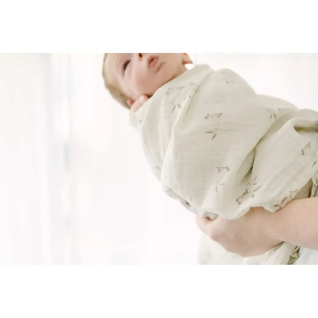 Experience the embrace of nature with the Avery Organic Muslin Cotton Bunny Swaddle. Crafted from 100% GOTS certified organic cotton and OEKO-TEX Certified, this swaddle blanket offers your baby unrivaled comfort and safety. The whimsical bunny design, in muted earth tones, adds a touch of enchantment to your baby's swaddle collection. Choose organic cotton for a gentle and soothing swaddling experience.