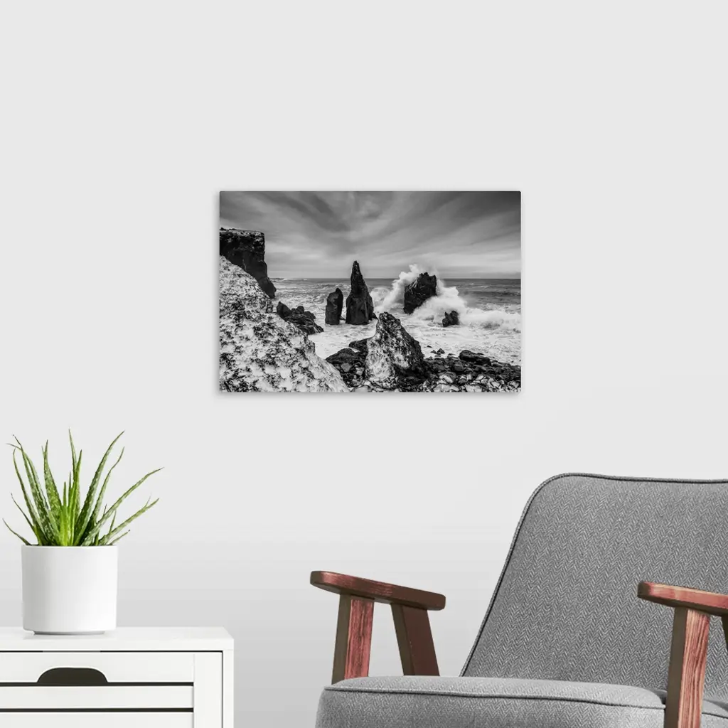 Crashing Waves On Sea Stacks, Reykjanes, Iceland