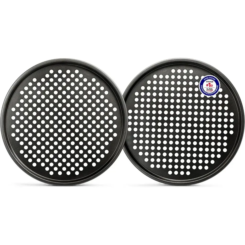 Super durable, lighter than cast iron and oh, that gorgeous unexpected blue. Perfect for thin-crust mini pizzas, our slate blue round pans are part of our bakeware collection that takes its cue from professional kitchens. Made of carbon steelan alloy of 99% iron and 1% carbon that's nearly indestructiblethe four petite pans heat quickly and evenly for consistent baking and perfect browning. Perforations allow for greater airflow and crispier crusts, and a double layer of silicone-based non-stick coating ensures easy release and quick cleanup. Pair with our other exclusive slate blue pans to build a versatile baking collection that's ready for any recipe.