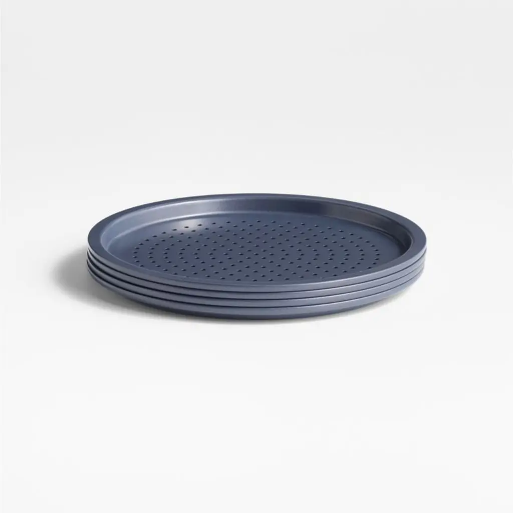 Crate & Barrel Slate Blue Mini Perforated Pizza Pans, Set Of 4