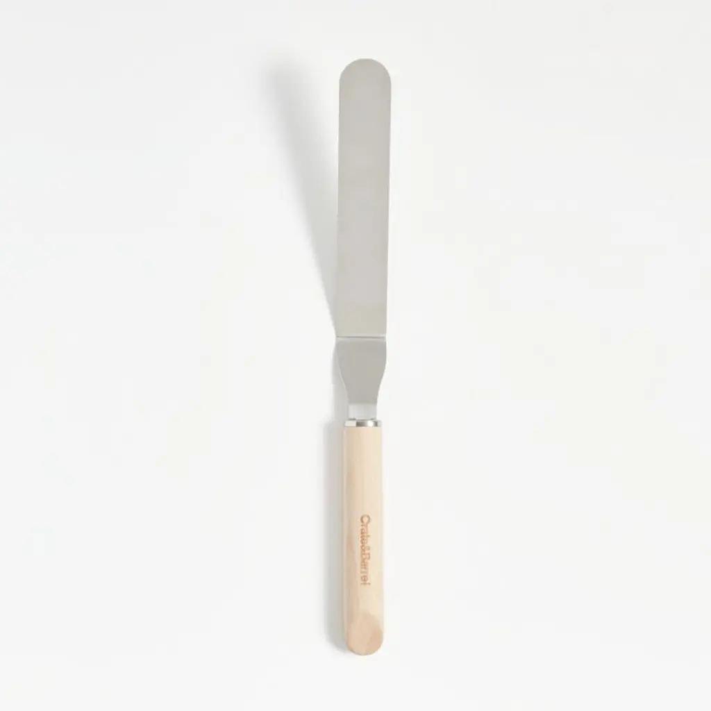 Smooth the frosted sides of cakes with our small straight icing spatula. Mirror-polished stainless steel shapes the sleek cake-decorating tool, while the soft-touch handle with a refined beveled edge provides a sturdy, comfortable grip. Combine with the other pastry tools in our exclusive Crate & Barrel collection for a well-outfitted workspace that's up to any baking challenge.Direct from our design team to your kitchen, the sophisticated assortment in our signature The Kitchen by Crate line combines beautiful simplicity and peerless performance. From initial sketches to rigorous testing, every expertly designed product in this kitchen collection meets our standards, and yours.View all "The Kitchen by Crate" collection
