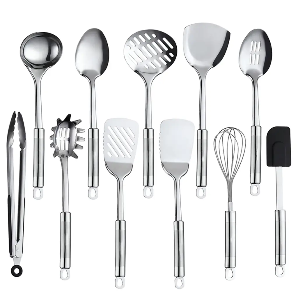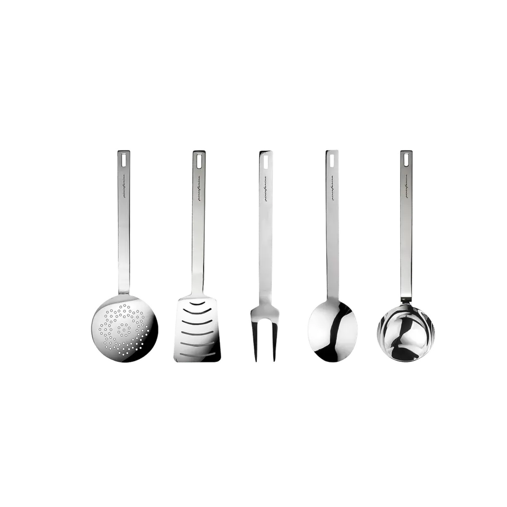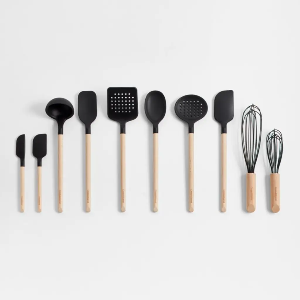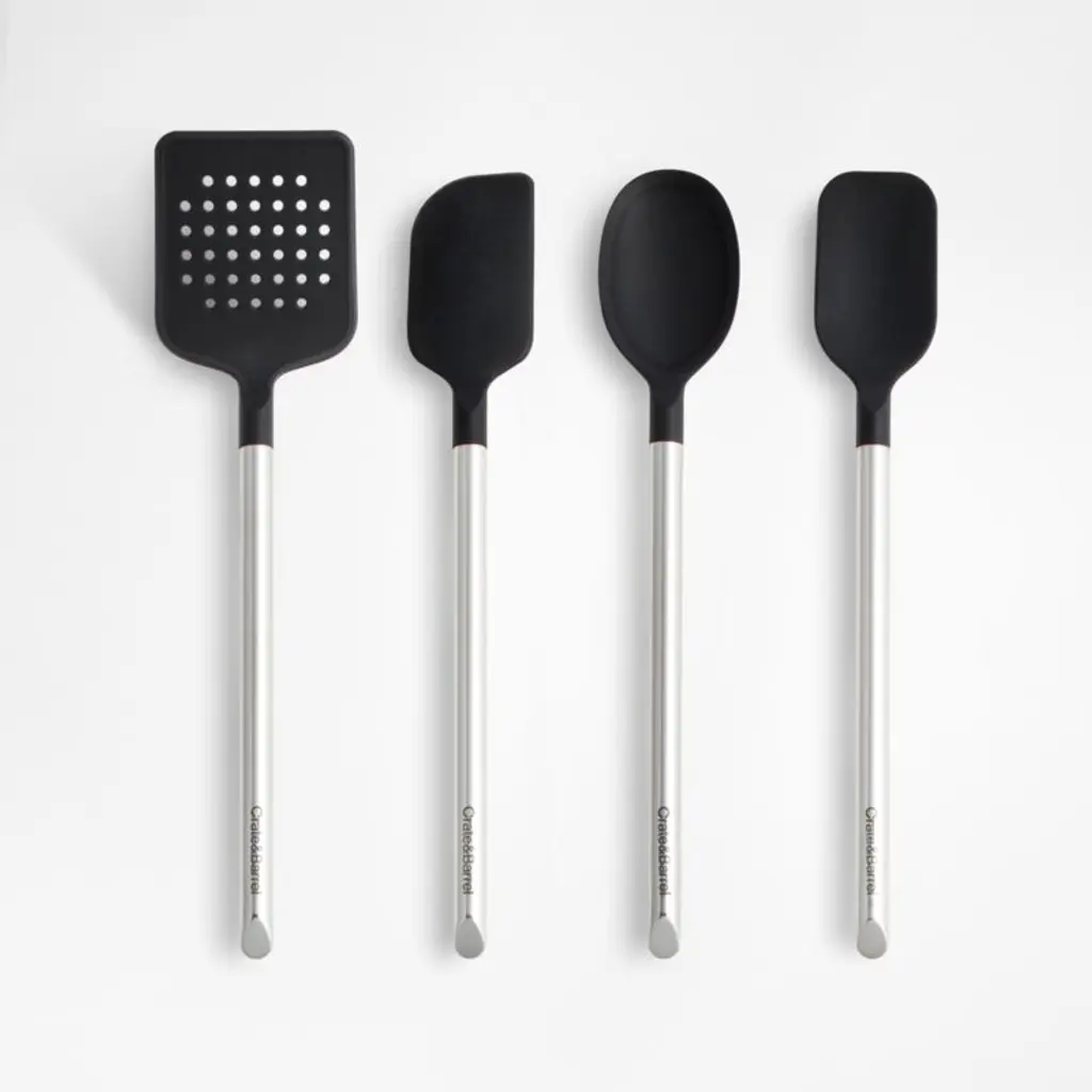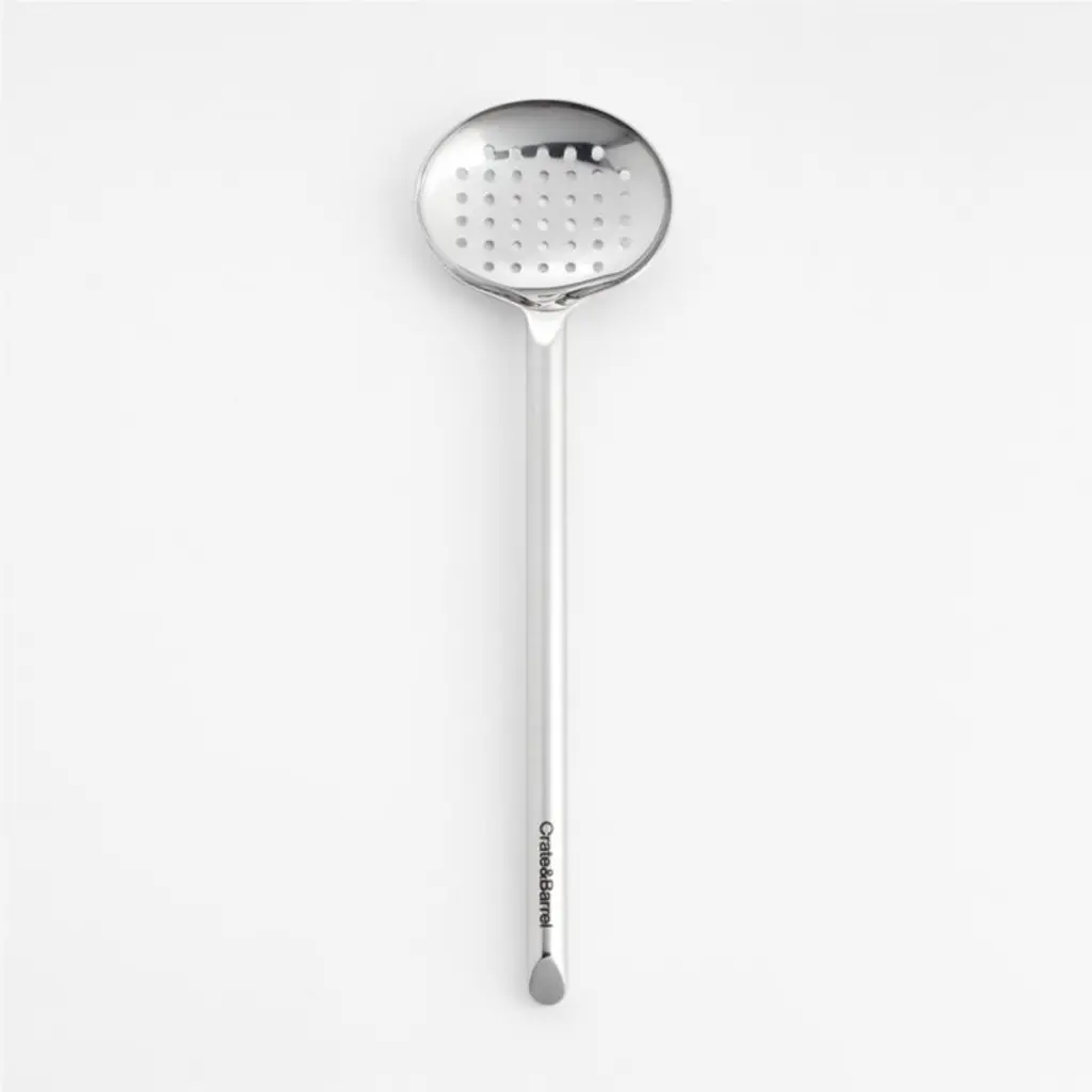 Stir, scoop, serve, scrape, flip and mix with our signature stainless steel utensils. The sturdy cooking essentials ably serve the thickest stews, flip the juiciest burgers and fold the most delicate meringues. Polished stainless steel shapes sleek utensils with cylindrical handles for a sturdy grip and a professional look. We love the way the refined beveled edges finish the elongated handles with a dynamic detail. Build your own collection of our exclusive Crate & Barrel utensils for a well-outfitted workspace that's up to any cooking challenge.View all "The Kitchen by Crate" collection