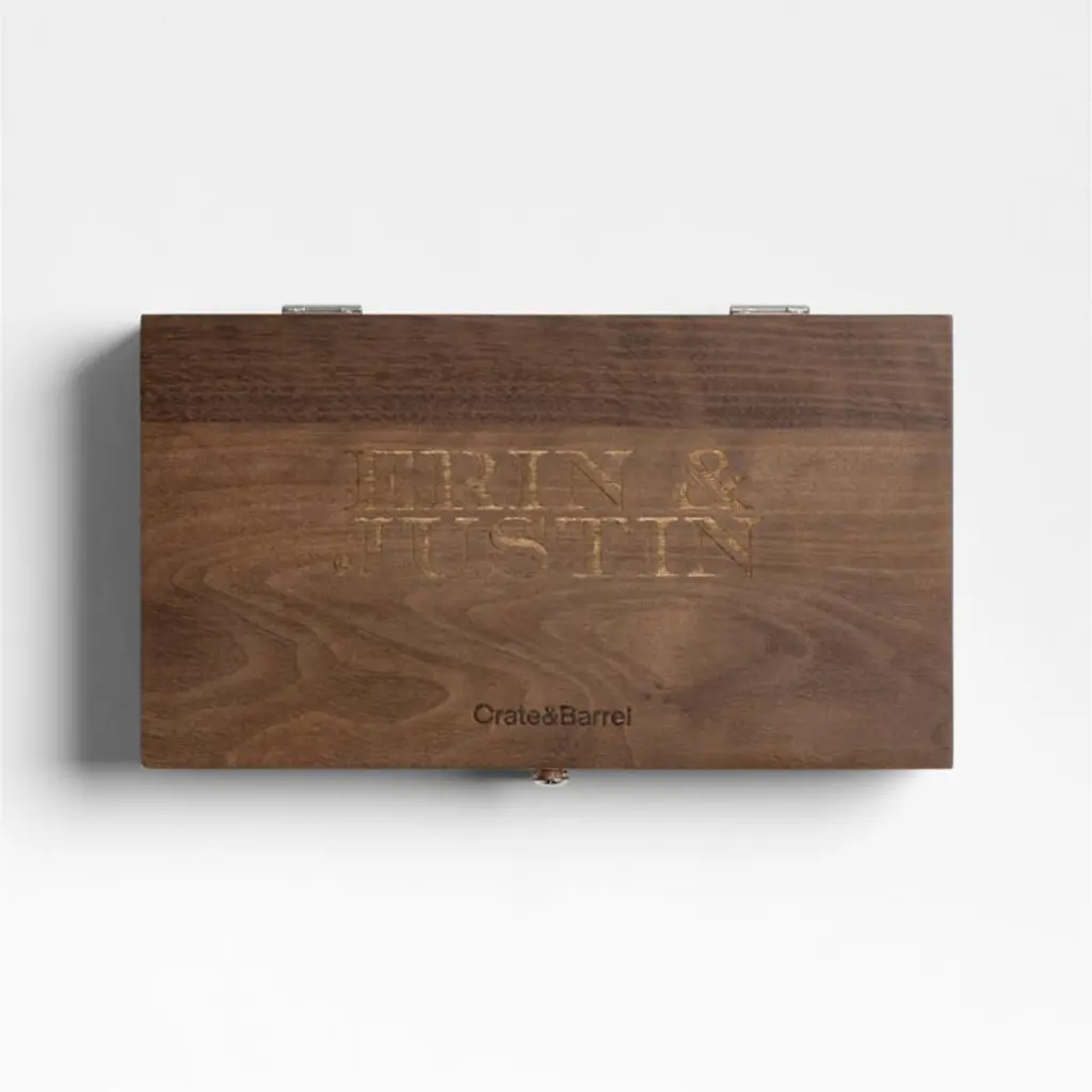 A steak knife set worthy of your family feast or holiday gathering. Stainless steel forges four extremely sharp carving knife blades fitted with sustainable walnut wood handles. We love the way the refined beveled edges finish the handles with dynamic detail, cooridnating with our signature kitchen utensils. Presented in a wooden gift/storage box, our well-balanced Crate & Barrel steak knife set makes a lovely housewarming, graduation or wedding gift.Direct from our design team to your kitchen, the sophisticated assortment in our signature The Kitchen by Crate line combines beautiful simplicity and peerless performance. From initial sketches to rigorous testing, every expertly designed product in this kitchen collection meets our standards, and yours.By choosing FSC®-certified products, you are supporting responsible management of the world's forests.