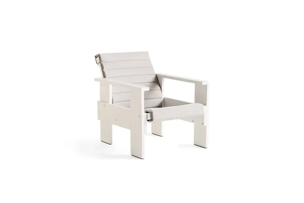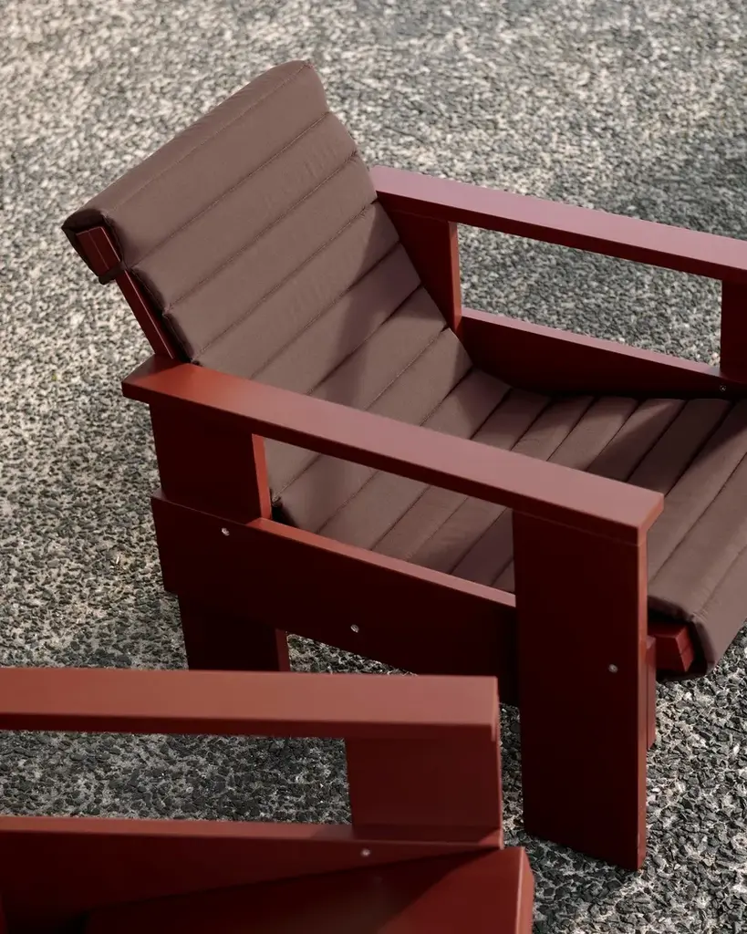 Adding extra comfort and functionality to the Crate Collection, the Crate Cushion is specially formed to fit the chair seat perfectly. Available in three different variants – a loose seat cushion for the Crate Dining Chair, as well as folded and quilted designs for the Crate Lounge Chair. The quilted model features a Velcro® fastening underneath the cushion seat and two straps that fasten around the top of the chair frame, with the seat and folding cushions both featuring an anti-slip bottom to keep them securely in place. All models are crafted in Teflon®-coated fabric for a water-repellent finish, as well as having a high UV resistance, meaning it is fade-resistant with good colour fastness properties. The cushions are available in several colour options and can be used all year round.Initially designed to make use of surplus wooden shipping crates by Dutch architect and designer Gerrit Rietveld in 1934, the iconic Crate Collection has been relaunched in a Rietveld Originals x HAY collaboration. Rietveld’s ambition to create modern, functional, and affordable furniture for the masses echoes HAY’s core values, making the Crate Collection an ideal fit for HAY. The collection comprises a lounge chair, dining chair, low table, and side table, all made with respect for the original design, and sharing the same precisely balanced proportions and transparent construction to minimise production costs and optimise the assembly process. Made of solid pine, with a water-based lacquered finish suitable for outdoor use, the collection’s simplicity, and spatial design mirrors the designer’s architectural style – providing functionality and comfort without absorbing space. The water-based coating and different colour options make the furniture suitable for a wealth of indoor and outdoor settings, and can be supplemented with optional seat cushions in selected textiles for extra comfort