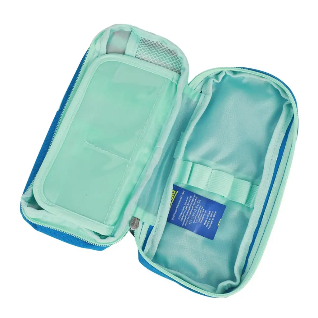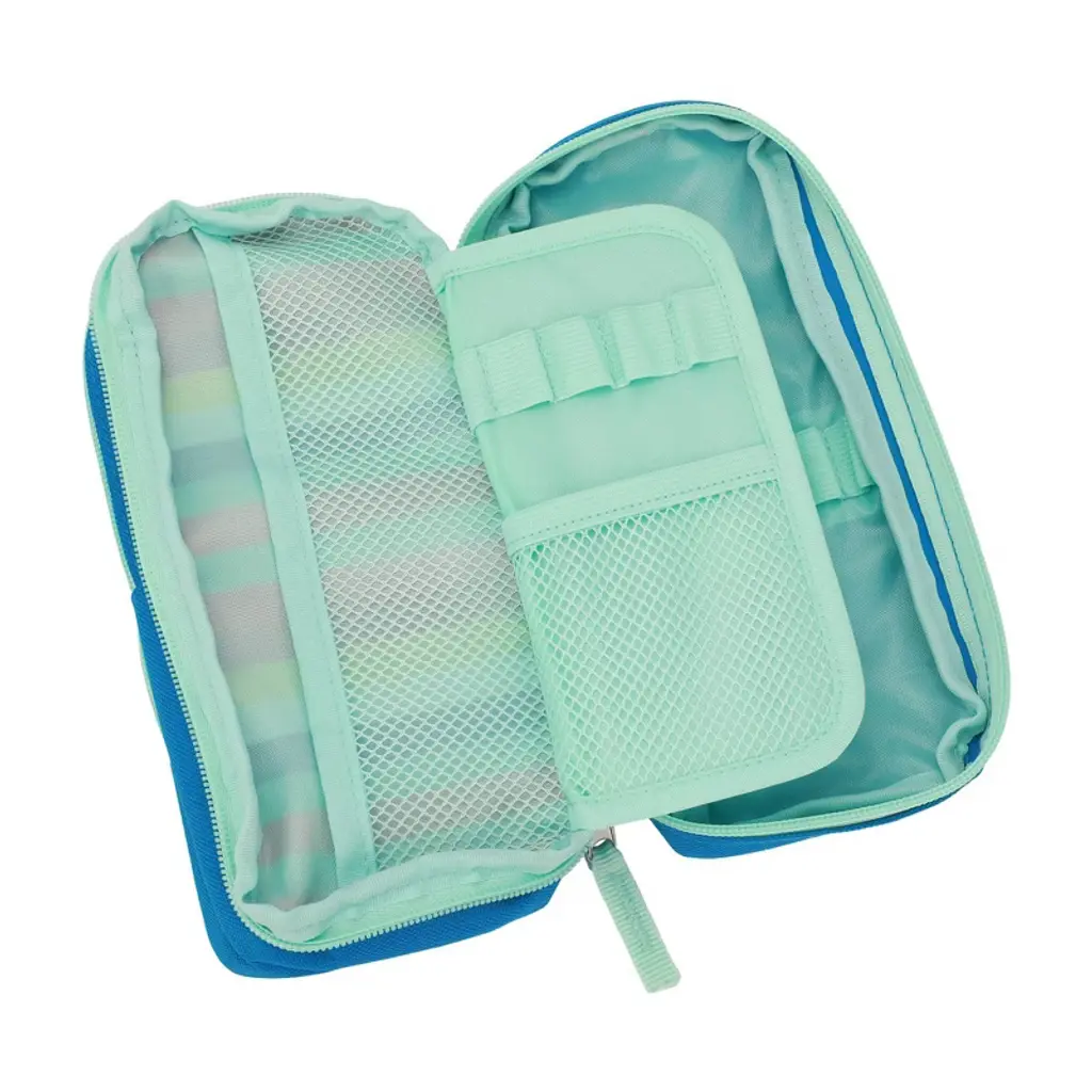 Zip up and get organized with this Crayola striped pencil case. Feauturing three zip compartments for storage; two can fit pens and pencils and the other samller objects like sticky notes. Perfect for those looking to add some color into their bag. This pencil case protects items with a soft casing and colorful stripes and patches.