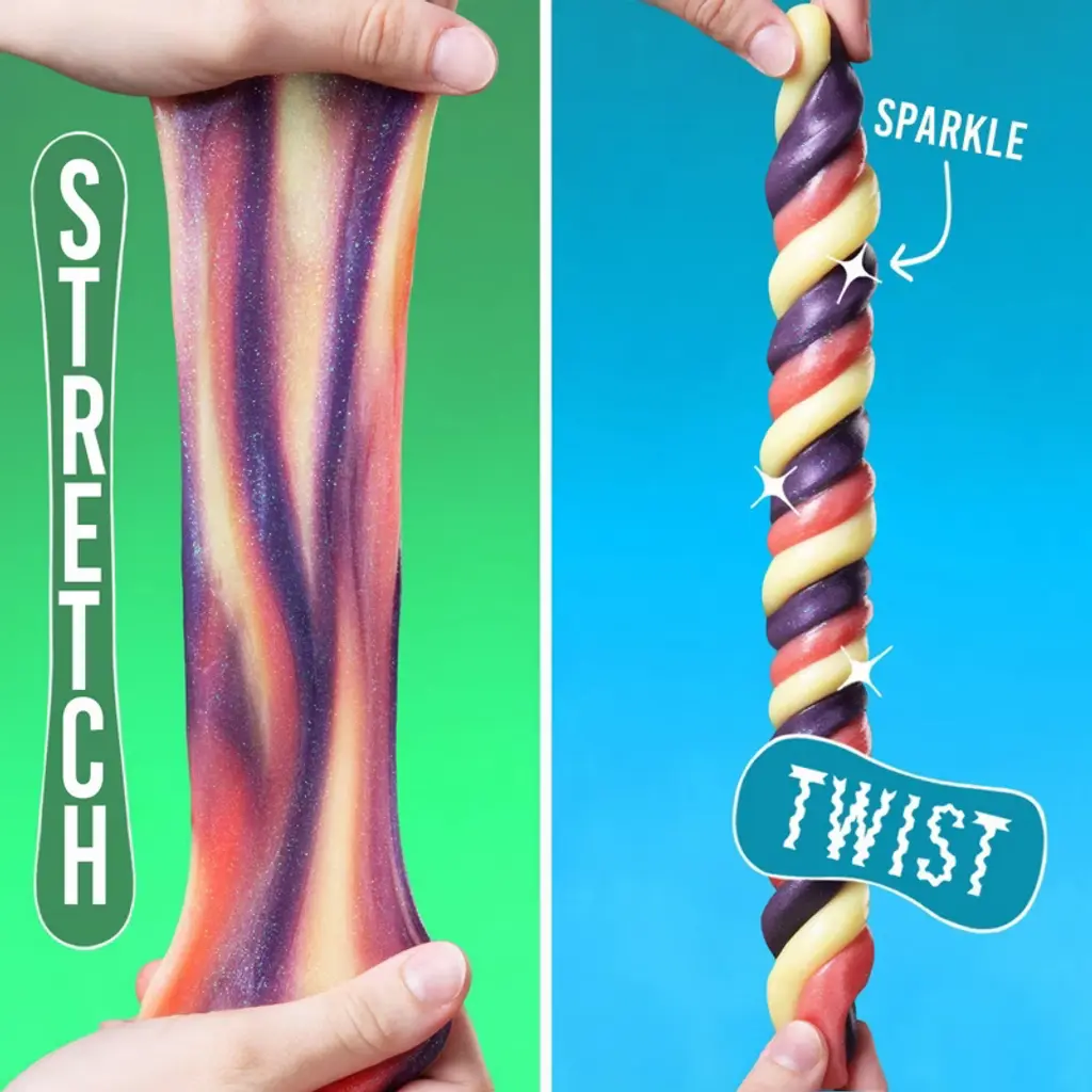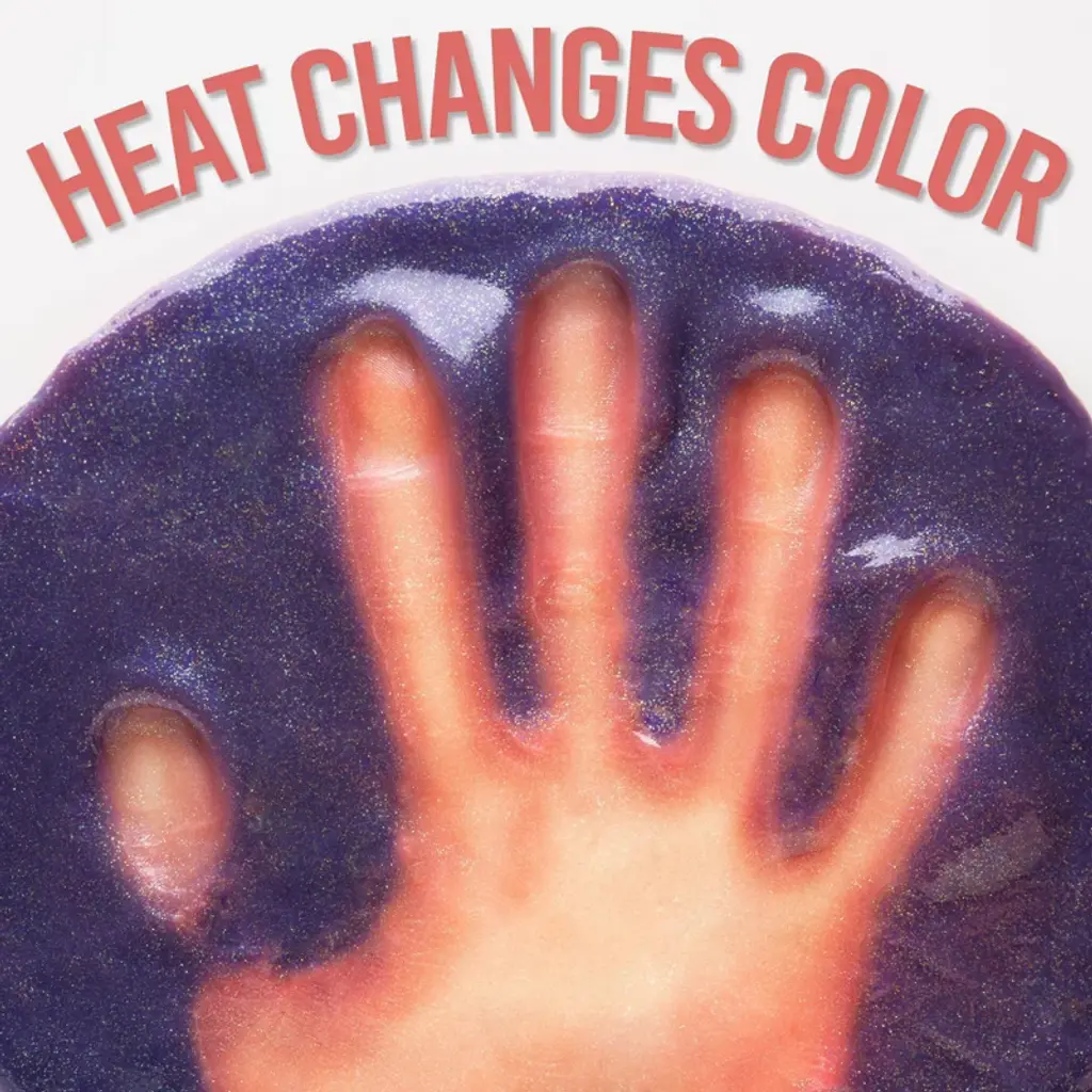Mimicking a magnificent desert sunset, Goodnight Cactus Thinking Putty® changes color with the heat of your hands. This triple change Hypercolor® captures the peaceful purple, luminous orange, and radiant yellow sundown of the night sky. Crazy Aaron's putty is non-toxic, won't dry out, and won't leave a sticky or slippery residue on your fingers, so it's great for stretching, molding, bouncing, tearing, popping, and playing by kids and adults alike.