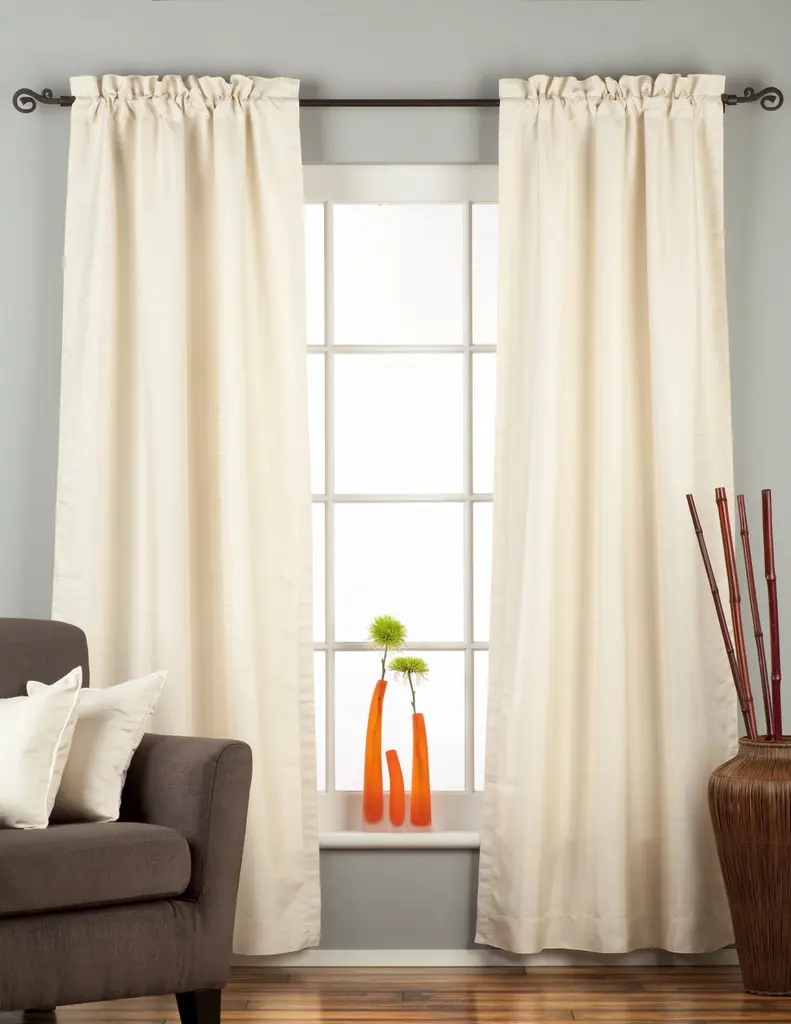Add a classy touch to your home decor with this beautiful raw silk curtain Matka silk also known as "Raw Silk" fabric is a heavy weight fabric made from thick yarns. This fabric is good from making luxurious full bodied curtains Indian Selections exclusive Raw Silk Drapery is woven from a blend of silk, rayon, and viscose to achieve the unique slightly nubby fabric in natural organic colors. Each handmade panel features slight variations in texture and thickness reflecting a more contemporary appearance.
